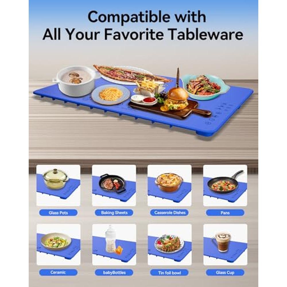 • Multifunctional Heating PadThis silicone heating pad for food is compatible with a variety of tableware, including ceramic, glass, metal and enamel, etc., and can be used for plate heaters, mask heating, dough fermentation, buffet heaters, etc. The large heating area can warm multiple dishes at once, making it ideal for family gatherings, buffets, and outdoor events, catering to various cooking needs.