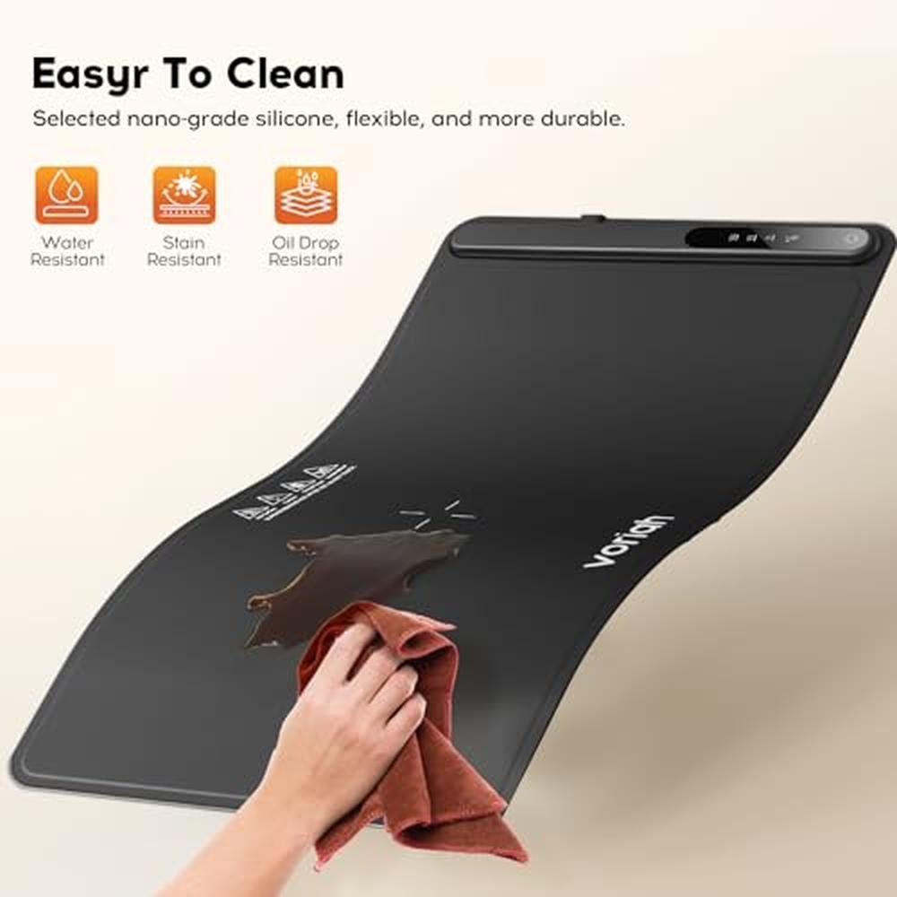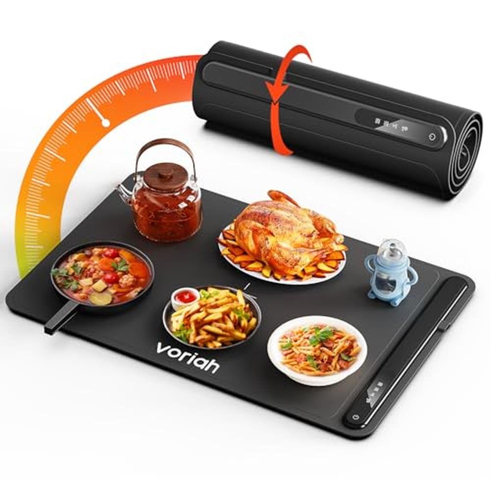 - Fast & Even Heating The Voriah 601 silicone food warmer uses advanced NTC technology and full-coverage heating wires to ensure rapid and even heat distribution. No more cold spotsyour dishes stay warm from edge to edge, ideal for buffets, potlucks, or everyday meals.
