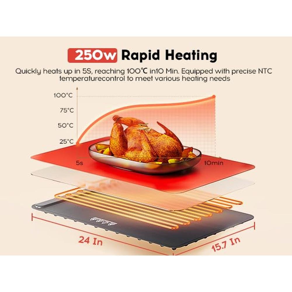 - Multi-Use FunctionalityMore than just a food warming mat, this portable heating pad is also great for warming milk, thawing frozen ingredients, or drying small household items. A practical addition to any kitchen countertop or dining setup.