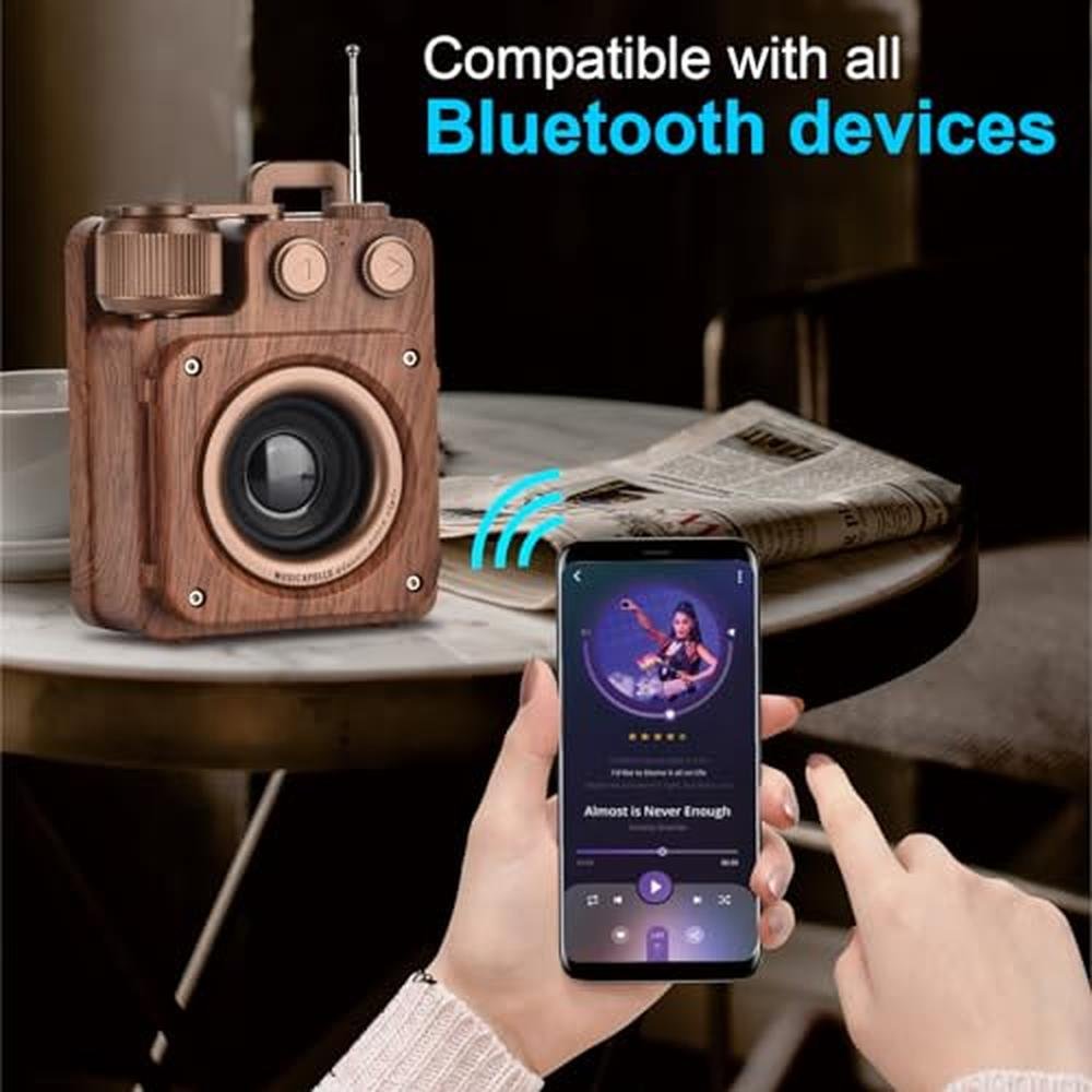 Retro Radio SpeakerThis retro bluetooth speaker combines vintage radio perfectly and looks beautiful as home or office vintage decor. Our vintage radio bluetooth speaker is compact and lightweight makes it easy to carry or pack into a backpack and suitcase. Wherever you are cooking, gathering, working in the yard, in the garage, by a campfire, hiking, cycling, or on the beach, it is your good companion..