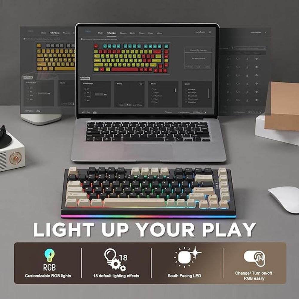 Black Yunzii | YZ75 75% Hot-Swappable Wireless Gaming Mechanical Keyboard | Premium RGB Backlights