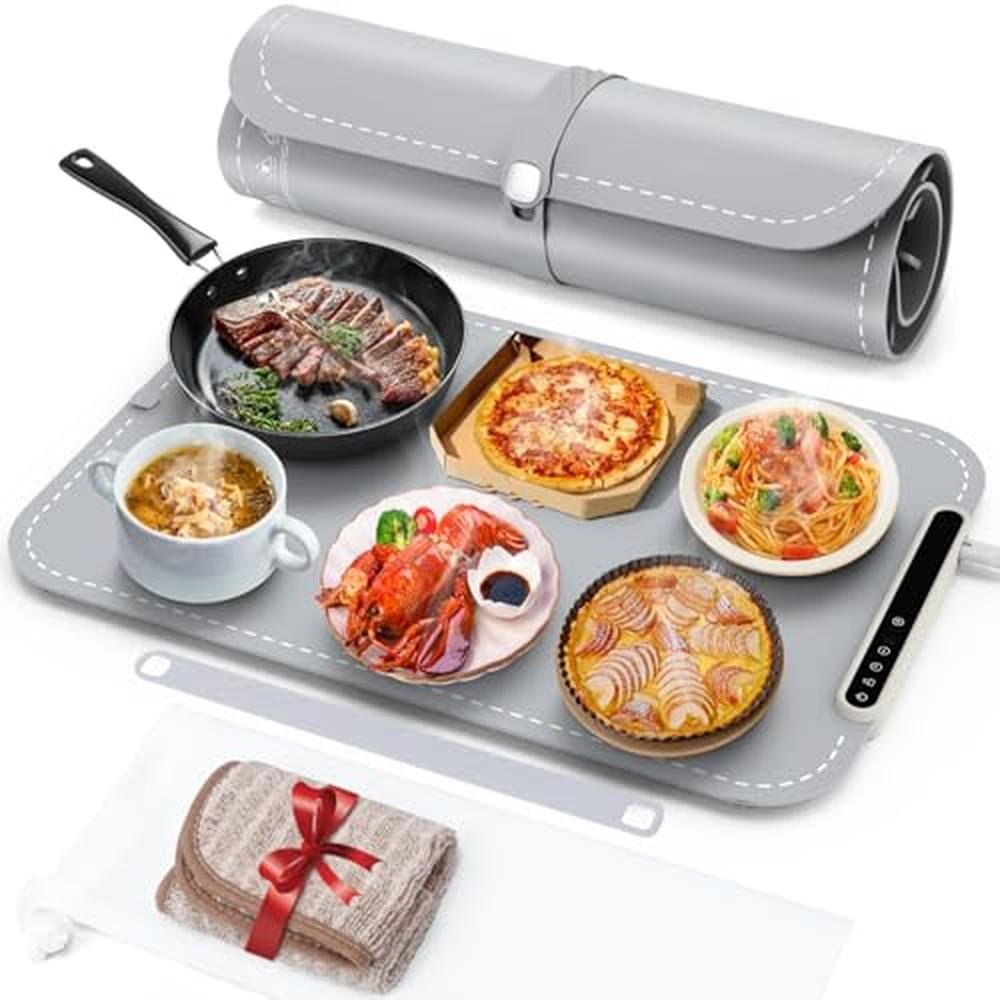 Zentiky Electric Warming Tray with Child Lock, Adjustable 7 - Level Temperature and 6 - Hours Timer Food Warming Mat, Full Surface Heating, Rollable, Portable Food Warmer for Gatherings-Grey