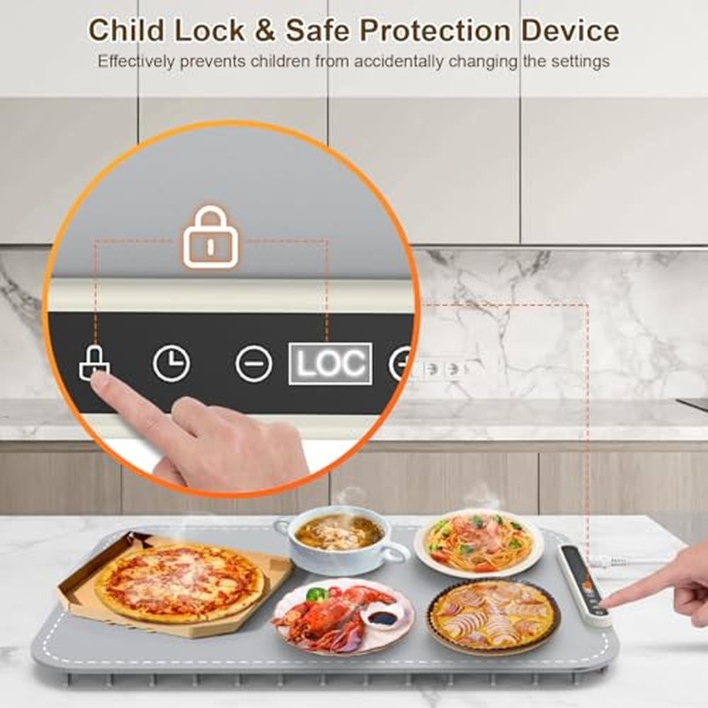 - Child Lock Function: For households with little ones, our Food Warming Mat has a reliable child lock feature.Simply long - press the child lock button until "LOC" appears, and the settings will be locked.To unlock, long - press the button once more until the temperature shows up.This effectively prevents children from accidentally changing the settings.
