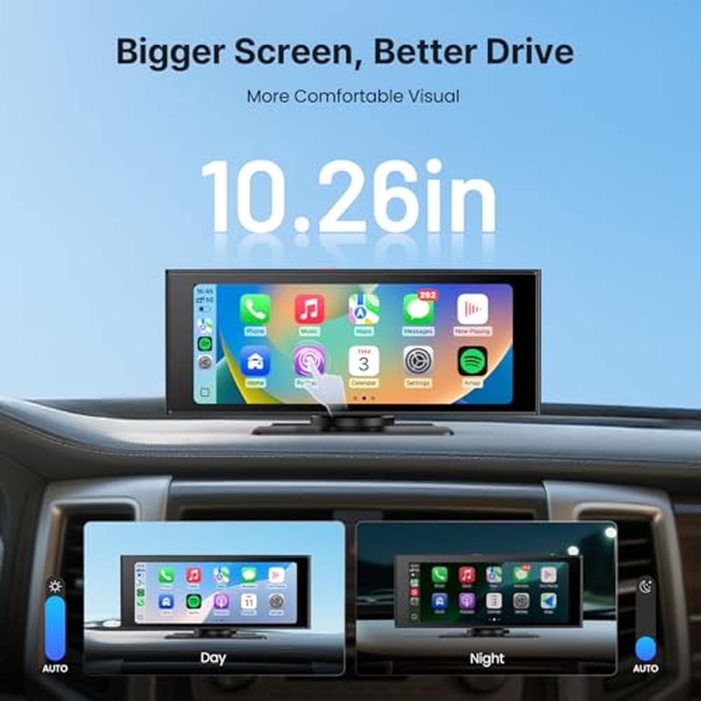 WonVon Wireless Car Play Screen | 10.26'' 4K Monitor with Apple Carplay and Android Auto | Premium In-Car Entertainment