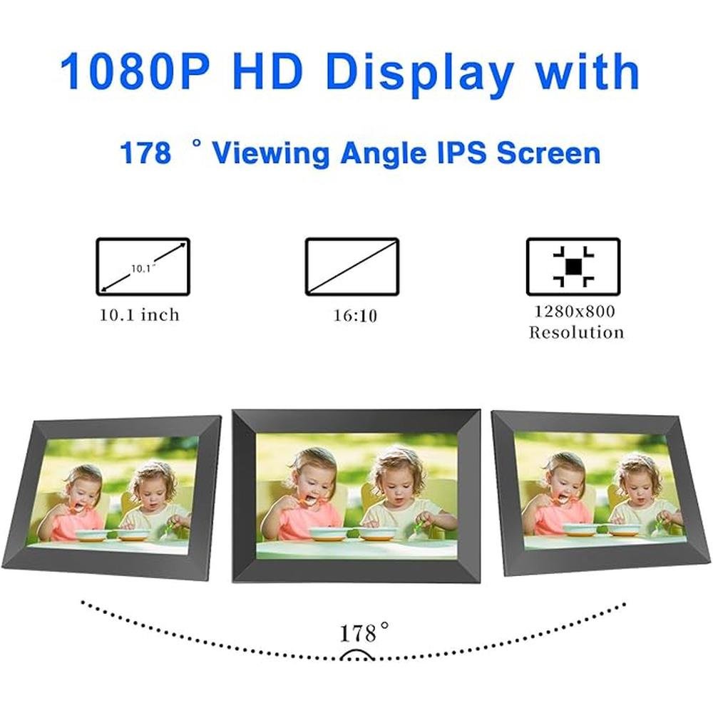 32GB FRAMEO 10.1 Inch Smart WiFi Digital Photo Frame- 1280x800 IPS HD Display,Touch Screen, 32GB Built-in Storage, Auto-Rotate,Digital Picture Frames Load from Phone (Black)