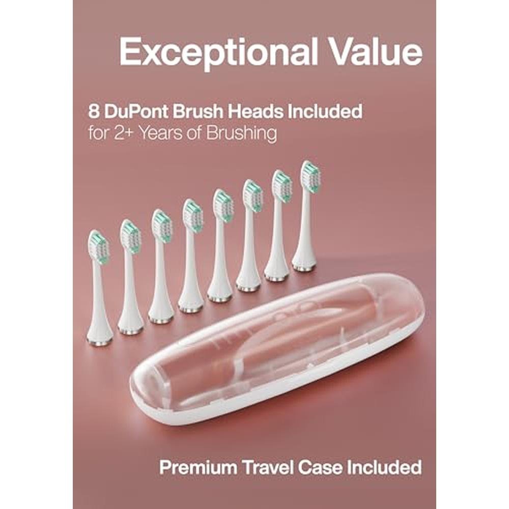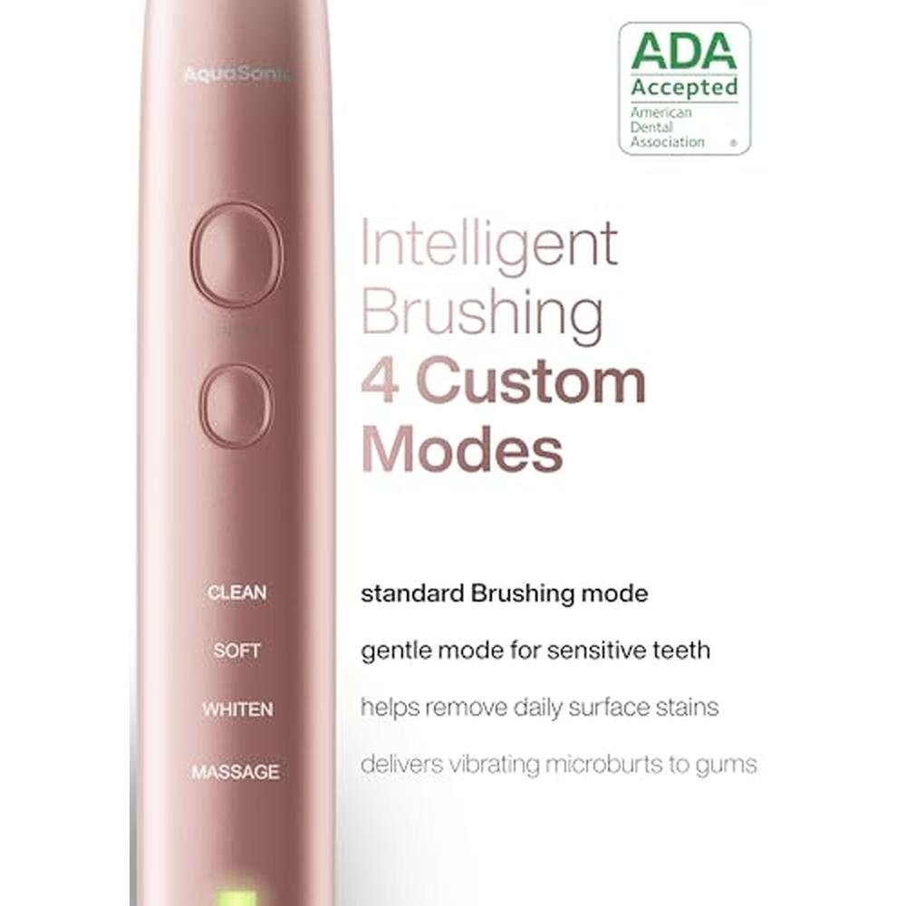Aquasonic Vibe Series Ultra-Whitening Toothbrush ADA Accepted Electric Toothbrush - 8 Brush Heads & Travel Case 40,000 VPM Motor & Wireless Charging - 4 Modes w Smart Timer Satin Rose Gold