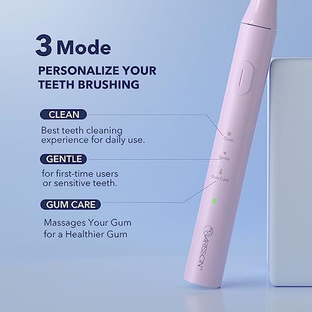 - 3 Modes for Customized Brushing & IPX7 Waterproof--- Suit Different Conditions of Teeth and Gums--- Arisson electric toothbrush has 3 modes: [1] Clean - for daily cleaning; [2] Gentle - for first-time users or sensitive teeth; [3] Gum Care - massages your gum for a healthier gum. Sonic toothbrush with IPX7 rated waterproof design, so the entire toothbrush can be safely rinsed with water and you can safely use toothbrush in the bath or shower.