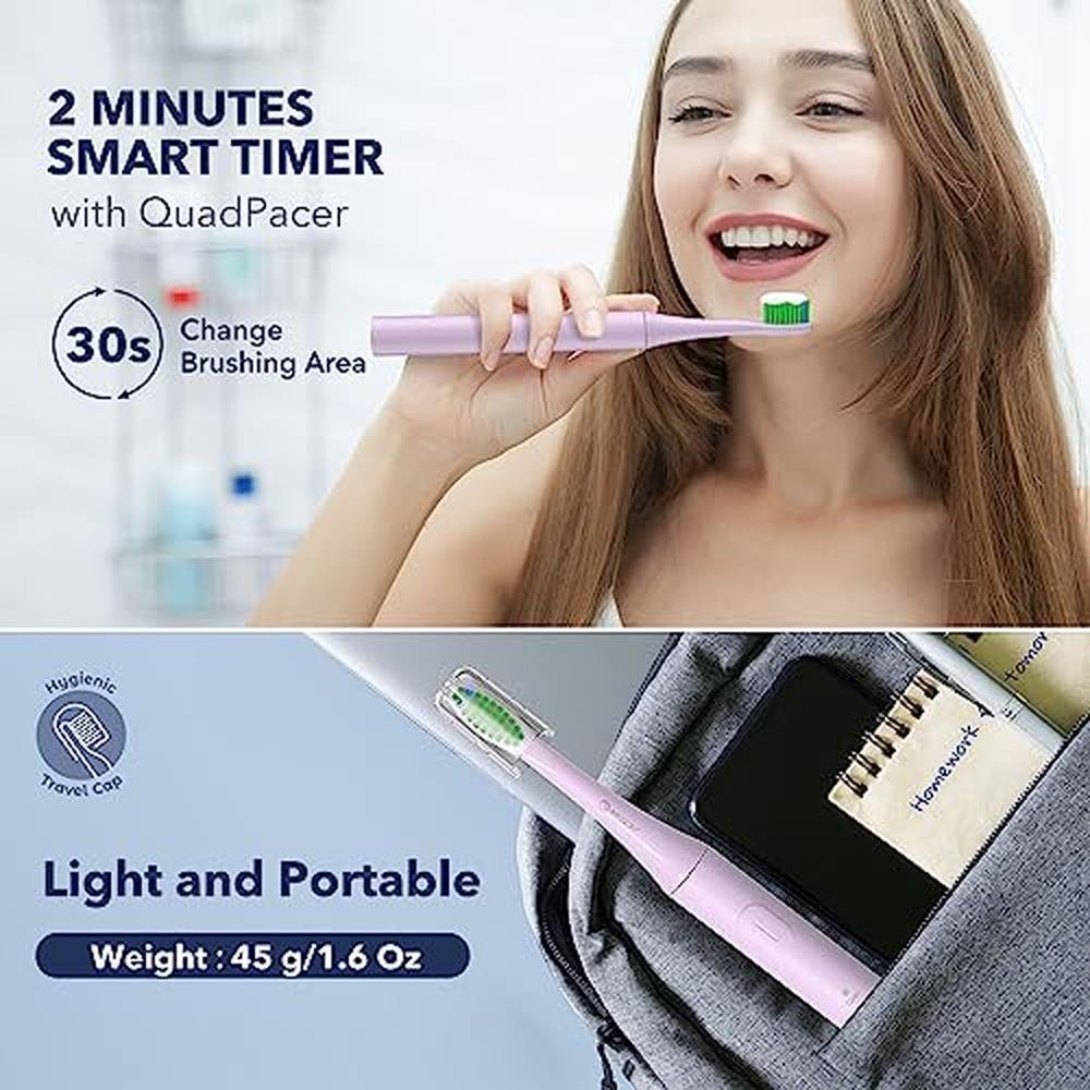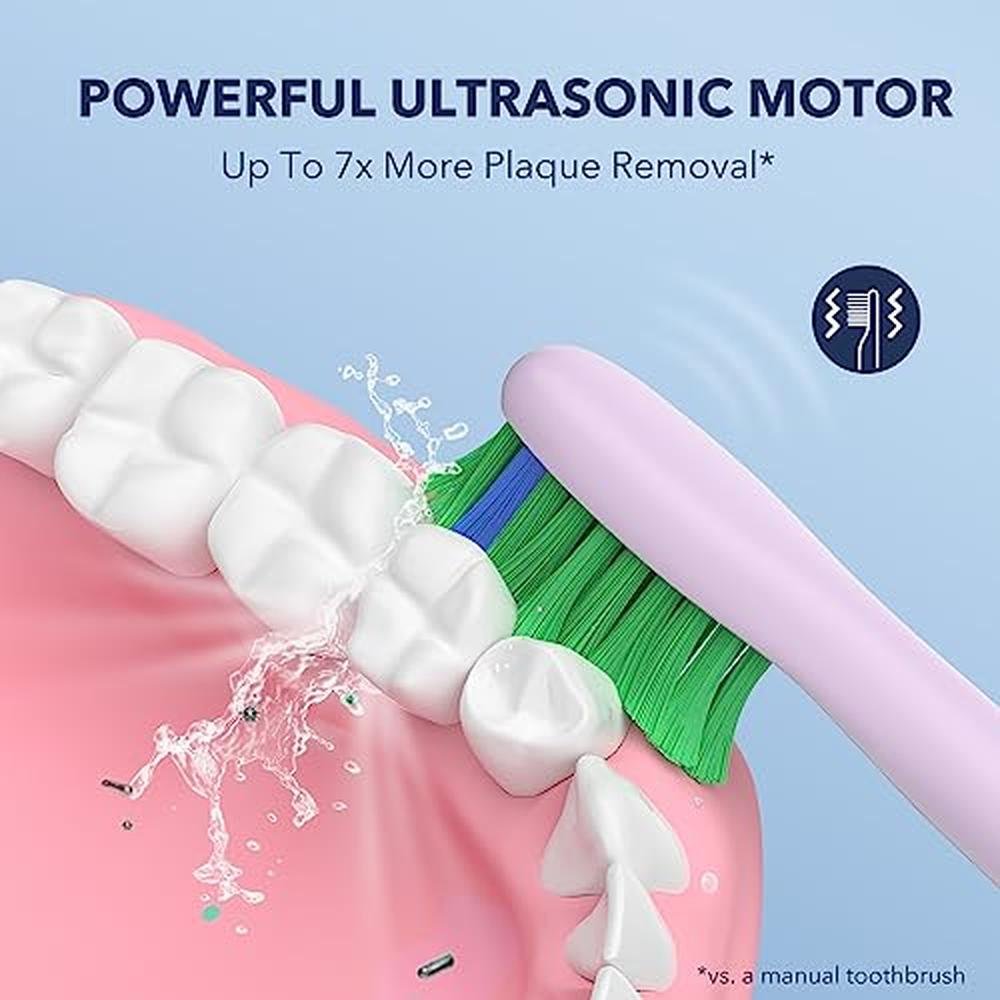 - Powerful Sonic Cleaning & 2-Mins Timer--- Recommended by professional dentists --- [1] Ultrasonic toothbrush packed with the most up to date sonic technology for exceptional clean and remove up 7X plaques. It features a industry leading motor producing 40,000 vibrations per minute, can reach deep areas in the mouth that traditional toothbrushes may miss. [2] Built in smart timer control, 30 seconds interval reminding you to move to the next quadrant of your mouth, and totally in 2 minutes.