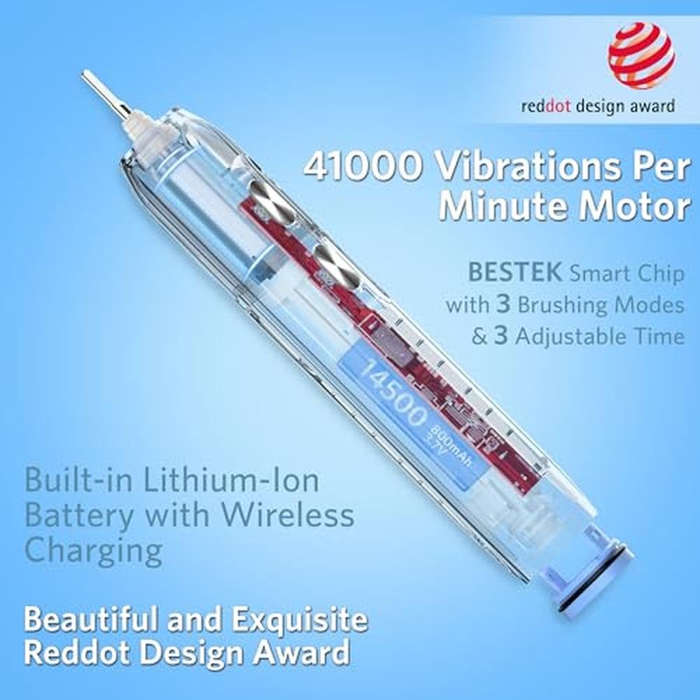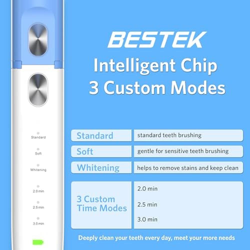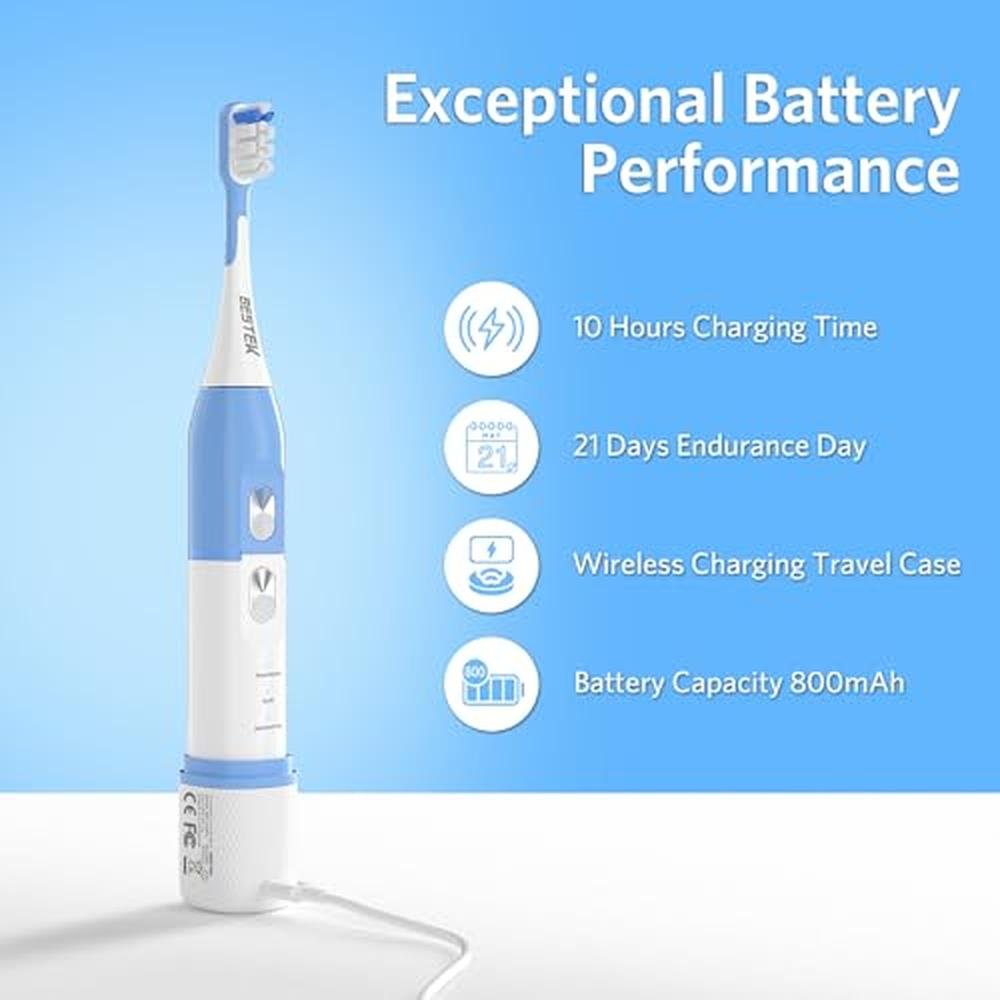 Sonic Electric Toothbrush | BESTEK | Premium Waterproof Design | 3 Replacement Brush Heads | Smart Timer