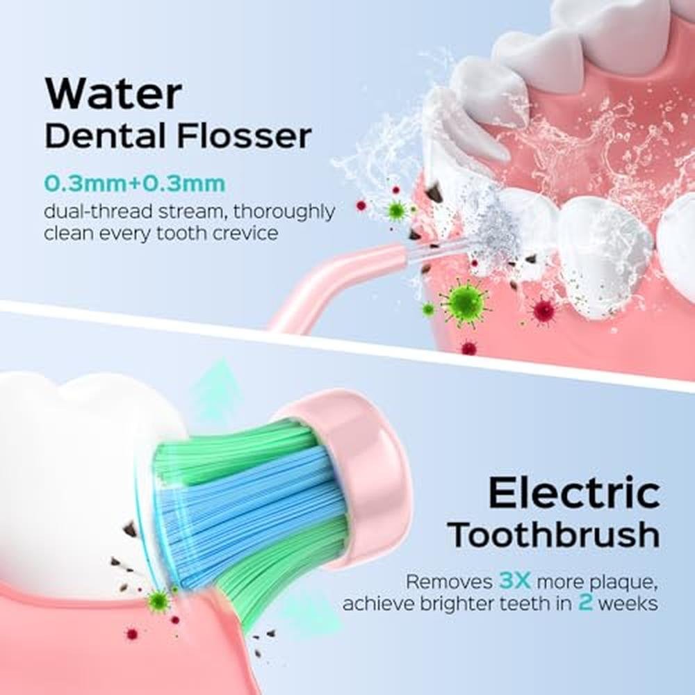 • Portable 2-in-1 Combo for Easy Oral Care: This electric toothbrush with water flosser combo is ideal for users who need to take care of a variety of needs, from brace wearers, to children and seniors with sensitive gums, to adults seeking a thorough clean for morning and night routines. Just one kit is all you need, keeping your breath fresh and a confident smile for you anytime, anywhere