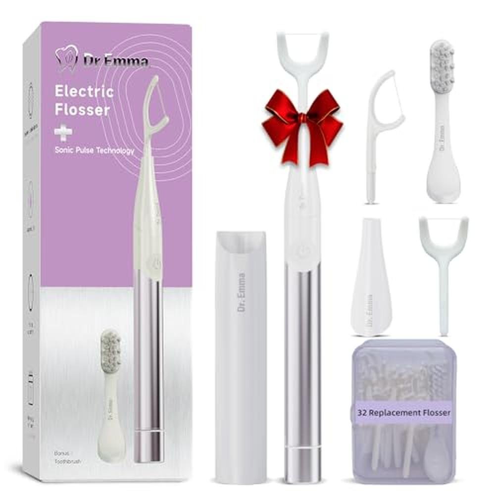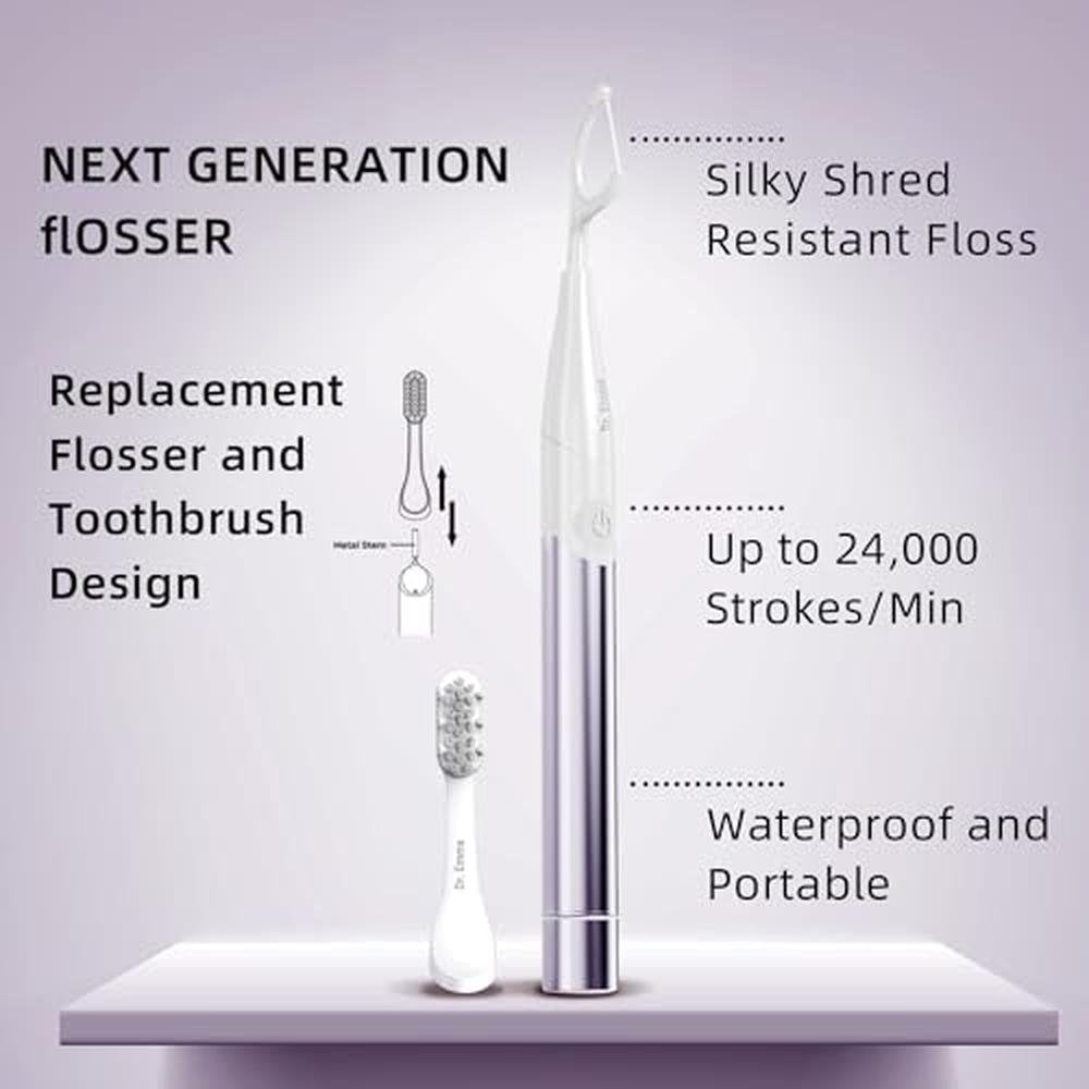 Dr. Emma Electric Vibration Flosser with Replaceable Floss Picks and Toothbrush, Power Flosser for Adults, Dental Flosser Kit for Teeth Cleaning, Water Flosser Alternative, Purple