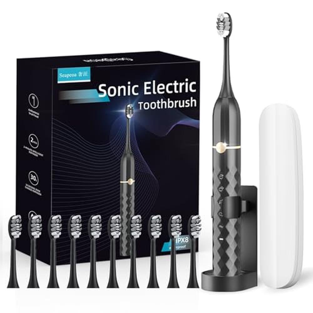 Seapeoa Adult and Children's Sonic Electric Toothbrush - Adult Rechargeable Electric Toothbrush with 10 Brushheads and Travel Case, 42000 VPM Motor, IPX8 Waterproof, Five Different Brushing Modes, Built in 2-minute Smart Timer