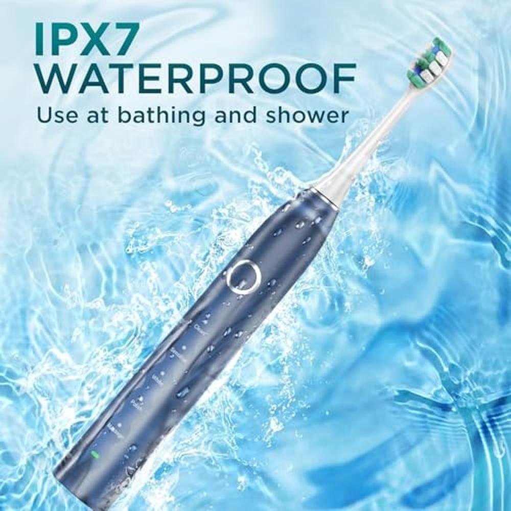 - 2-Mins Timer and IPX7 Waterproof - Built-in smart timer control, 30-second intervals reminding you to move to the next quadrant of your mouth, and total in 2 minutes, 4 quadrants. The reminder function ensures a scientifically recommended brushing time. IPX7 waterproof design Feel free to use your electric toothbrush safely in the shower or bath.