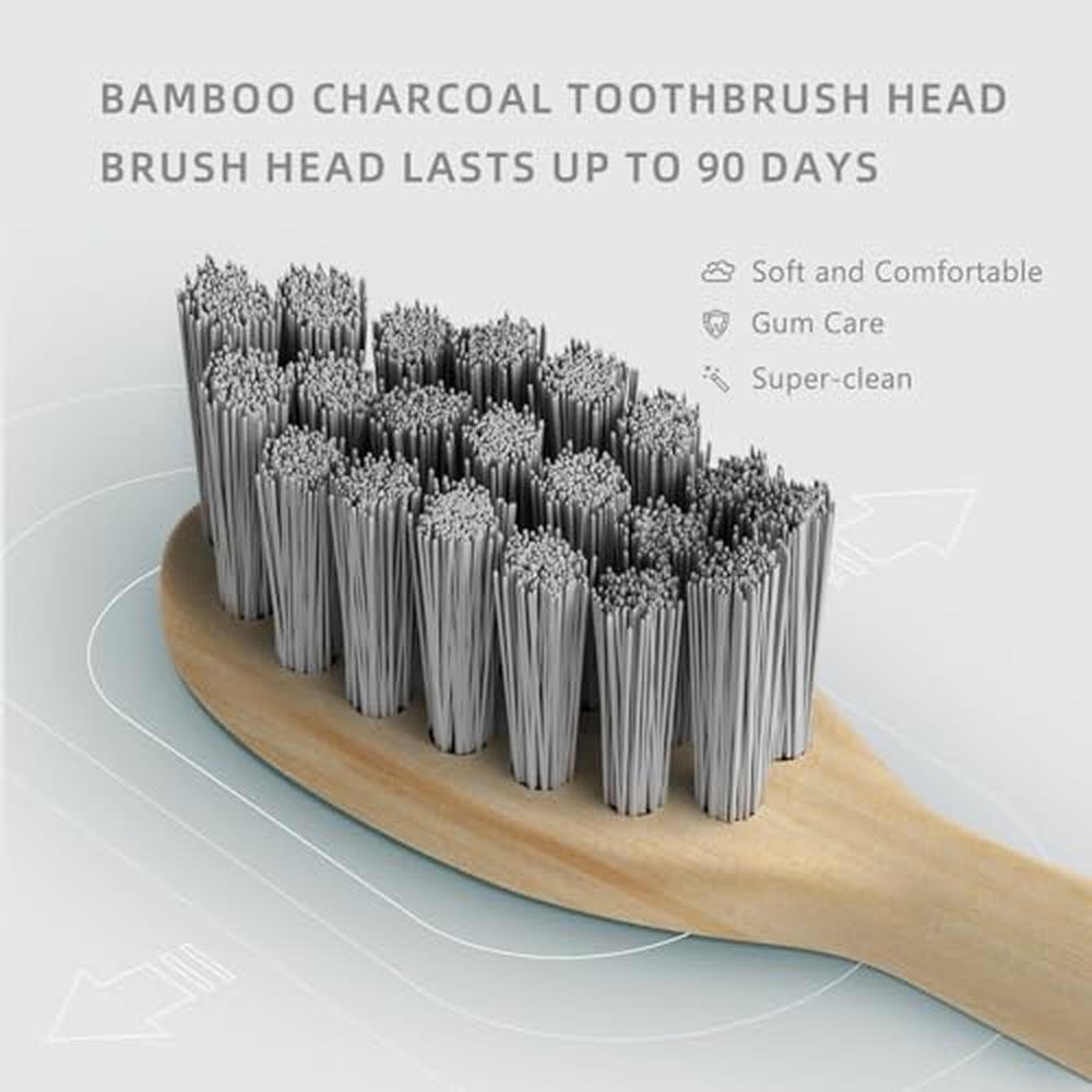 - GUFICLE BAMBOO ELECTRIC TOOTHBRUSH - This sonic bamboo electric toothbrush uses bamboo charcoal brush heads, soft and comfortable, which can help protect your enamel and clean up plaque. Our bamboo electric toothbrush produces up to 38,000 micro vibration per minute, whitening teeth, brightening smiles, and achieving a gentle and deeper teeth clean.