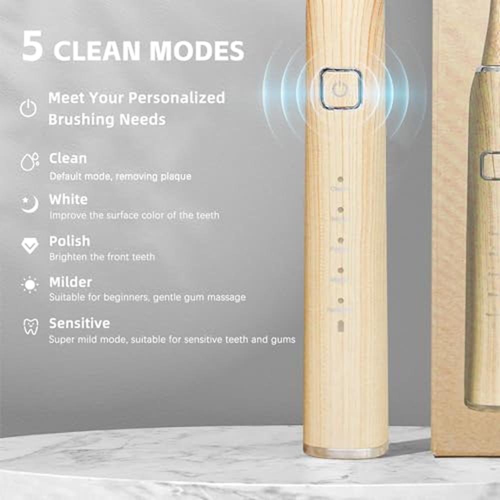 - 5 MODES - Our sonic bamboo toothbrush have 5 clean modes: clean, white, polish, milder, sensitive, you can choose different modes according to your needs.