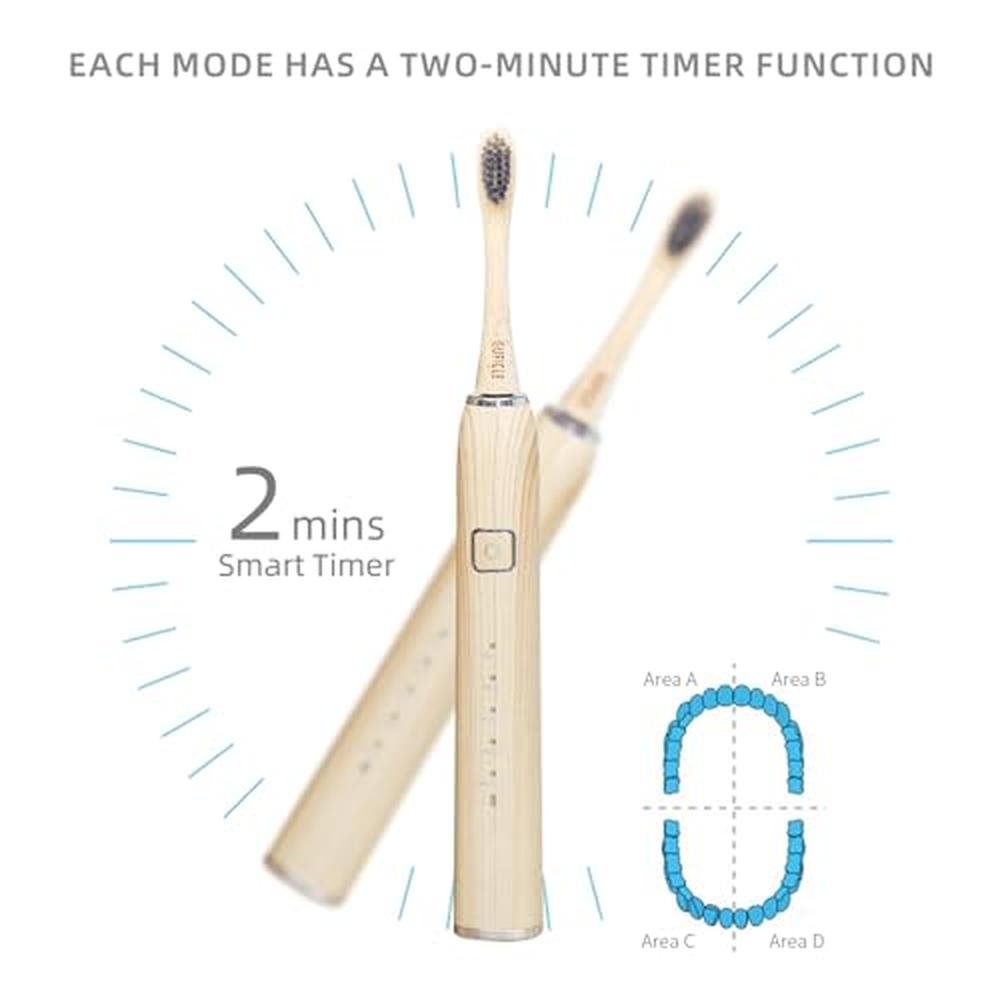 - SMART TIMER - The bamboo electric toothbrush for adult has a 2 minute timer each mode, this function allows you to better plan brushing time.