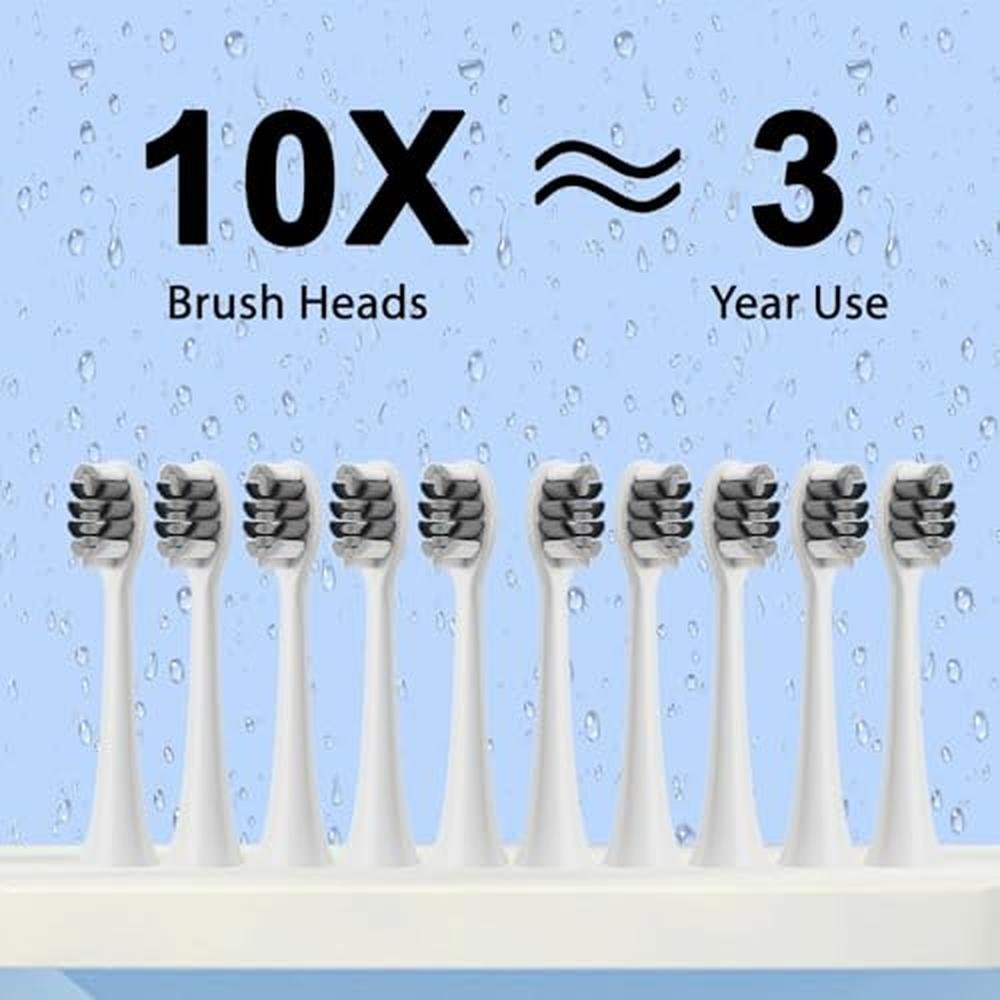 - 10 Replacement Brush Heads, U Shaped Design - Comes with 9 replacement brush heads to avoid frequent replacement. The U shaped design conforms to the shape of your gums and thoroughly cleans gums and hard to reach areas. Note: Gently cares for your gum lift. Each brush head can be used for 3 months, so 10 brush heads will last for about 30 months.