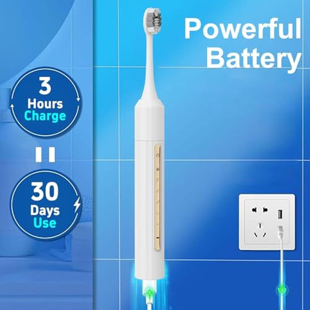 Sonic Electric Toothbrush with 10 Brush Heads for Adults and Children, Up to 30 Days on a Single Charge, 5 Modes, Built-in 2-Minute Smart Timer, IPX8 Waterproof Electric Toothbrush(White