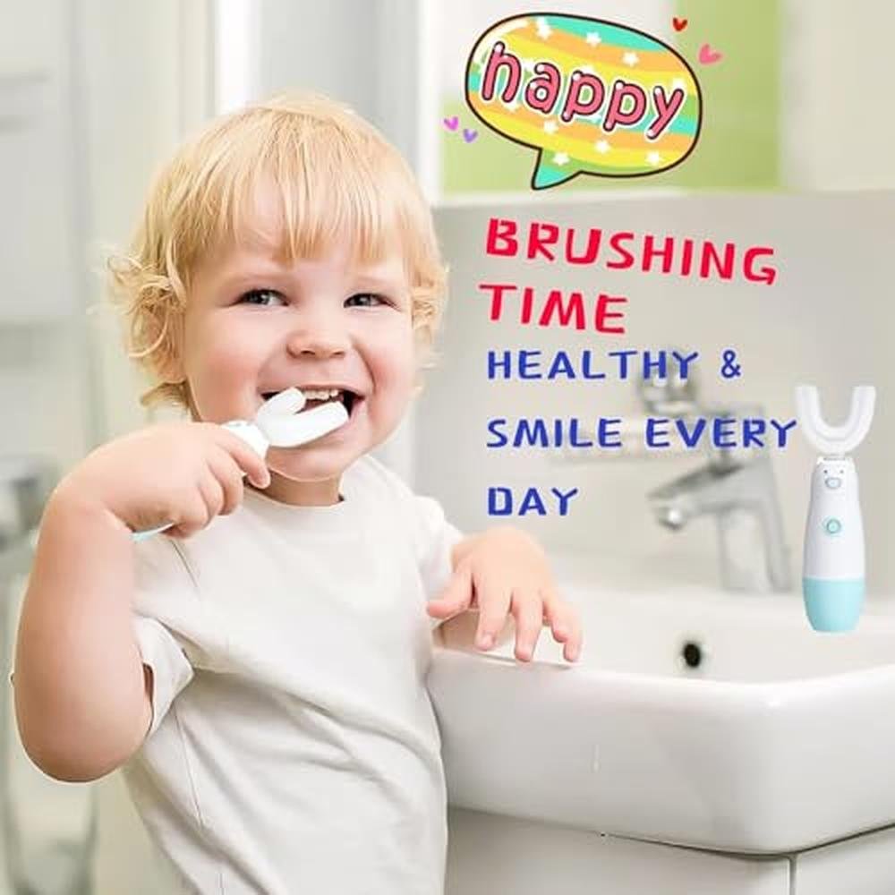 Premium Electric Toothbrush for Kids | Meqtpomy Kids 360 Automatic Sonic U-Shaped Toothbrushes | Waterproof & Battery Powered