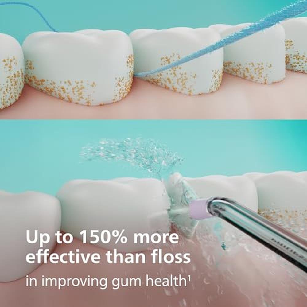 - Improve gum health in 2 weeks: Philips Sonicare cordless water flosser is up to 150% more effective than floss in improving gum health ; it also removes up to 99% of plaque from below the gumline