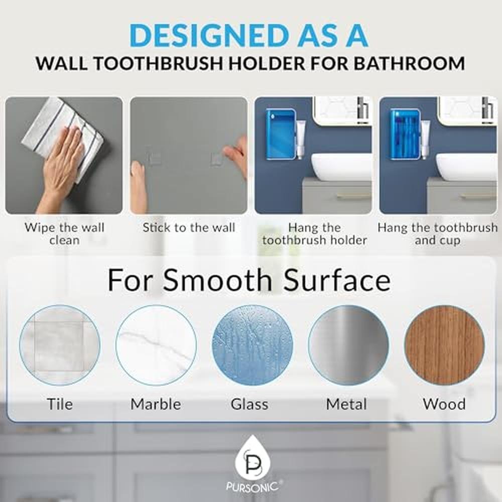 Elevate your bathroom experience with the Pursonic UV Toothbrush Sanitizer Holder, a cutting-edge wall-mounted solution designed to keep your toothbrushes clean and hygienic. This innovative holder features 5 slots for multiple toothbrushes, a toothpaste holder, and UV sanitizing technology for a germ-free experience. With no-drill installation, it's easy to use and maintain. Experience the ultimate in bathroom hygiene and upgrade your daily routine with the Pursonic UV Toothbrush Sanitizer Holder.