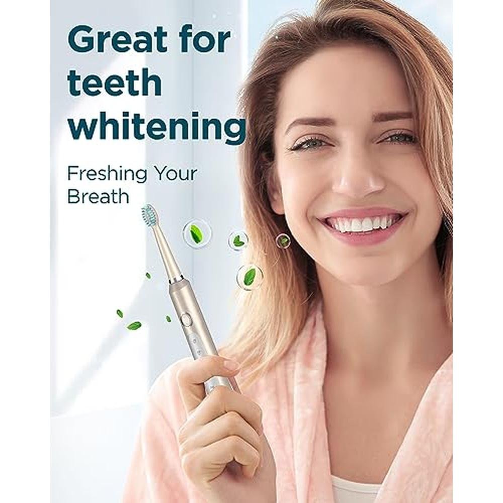 - Teeth Whitening Electric Toothbrush: Advanced whitening technology in an electric toothbrush for adults helps whiten teeth with consistent use, leaving you with a more radiant smile. The built-in 2-minute timer and 30-second reminder function ensure a scientifically recommended brushing time, and the 5 brushing modes offer a tailored cleaning experience that suits your unique oral care needs.