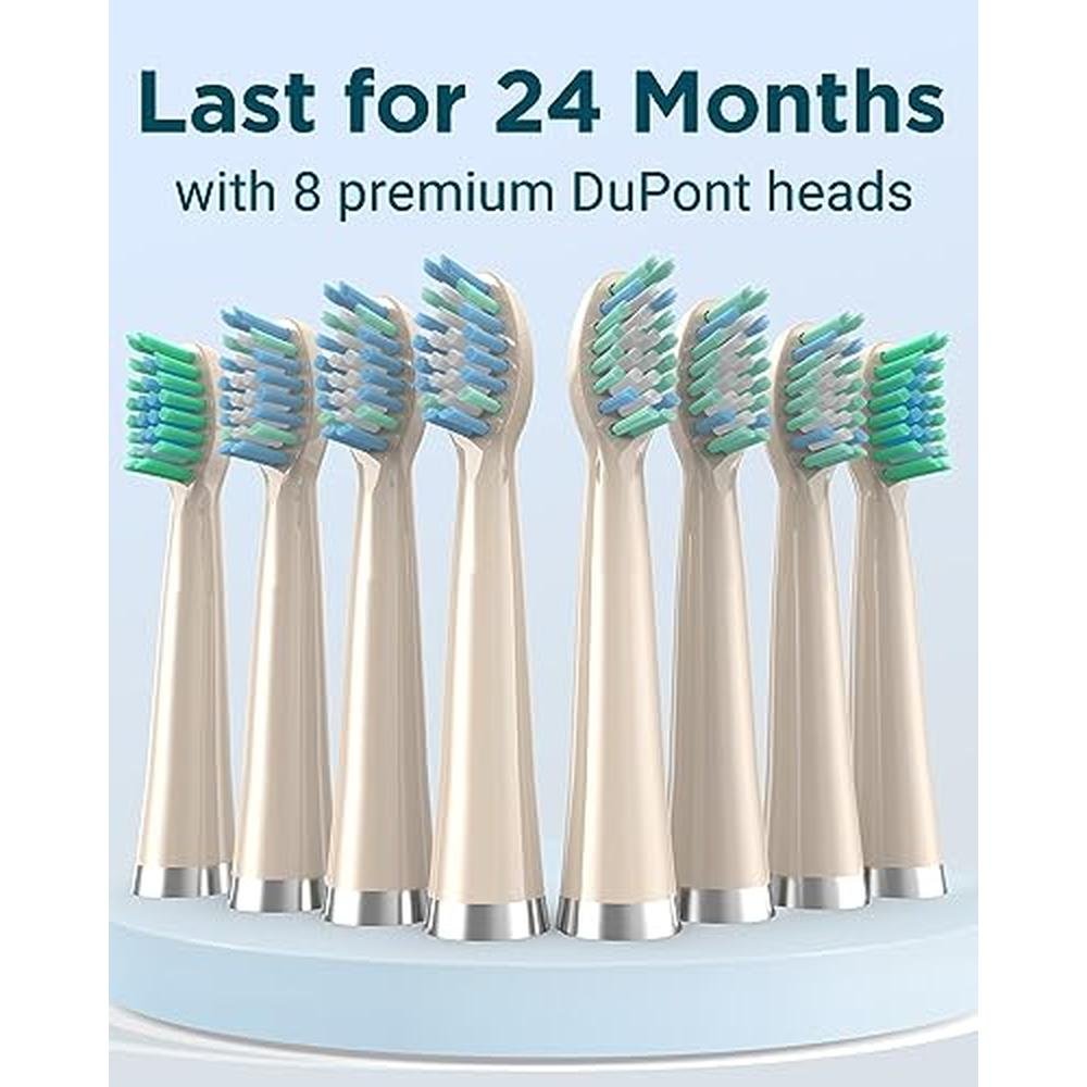 - 8 Brush Heads Including 2 Sensitive Heads for 2 Years to Save Money: The rechargeable electric toothbrush comes with 8 premium replacement brush heads, including 2 sensitive brush heads specially designed for sensitive teeth, protecting teeth and gums. The sonic electric toothbrush for adults is designed to provide 24 months of usage and save you money on buying new electric toothbrushes for adults.