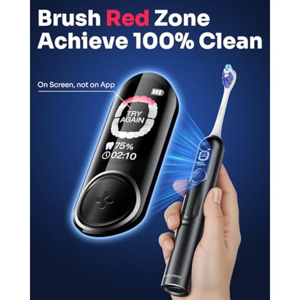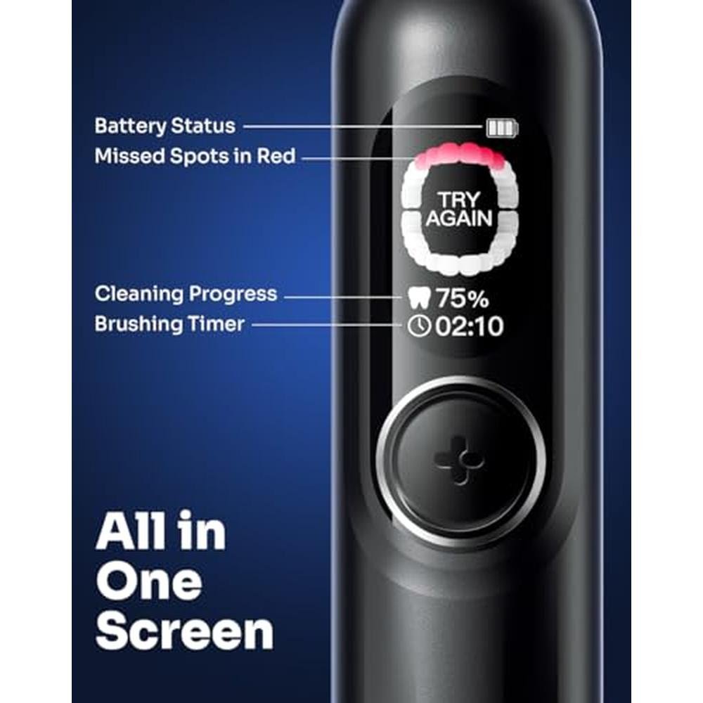 - AI-Driven Smart Screen-Real-time cleaning tracking with 6 zone mapping, adjusts brushing intensity automatically based on oral structure for 98% plaque removal efficiency* (*lab test results).