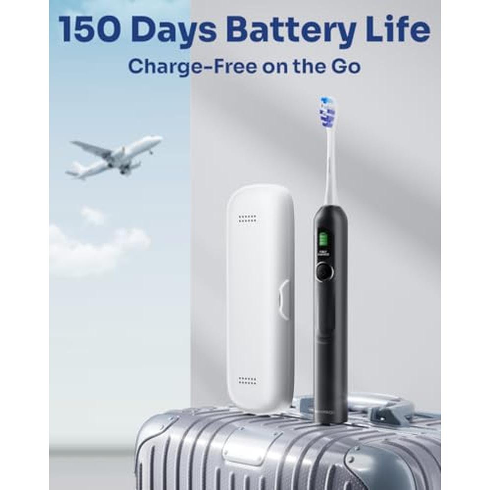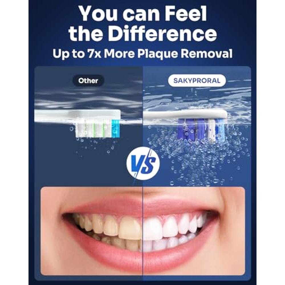 SAKYPRORAL Smart Electric Toothbrush, 6 Brush Heads w/Travel Case, AI Zone Cleaning Tracking, 5 Brushing Modes, 150-Day Battery, Smart Timer, Dental Hygiene Essentials