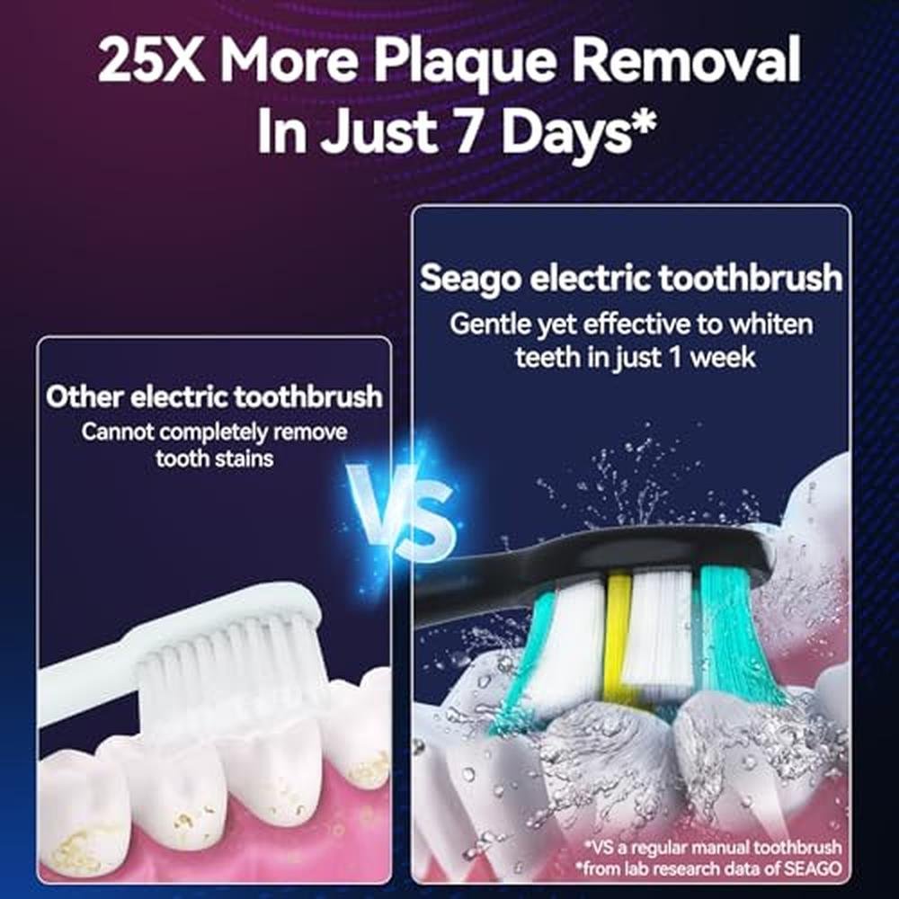 Our SEAGO Electric Toothbrush is a top-tier travel accessory, engineered to deliver exceptional results and unparalleled convenience. With its sleek design and advanced features, this premium toothbrush is an essential companion for any traveler seeking to maintain a healthy smile on-the-go.