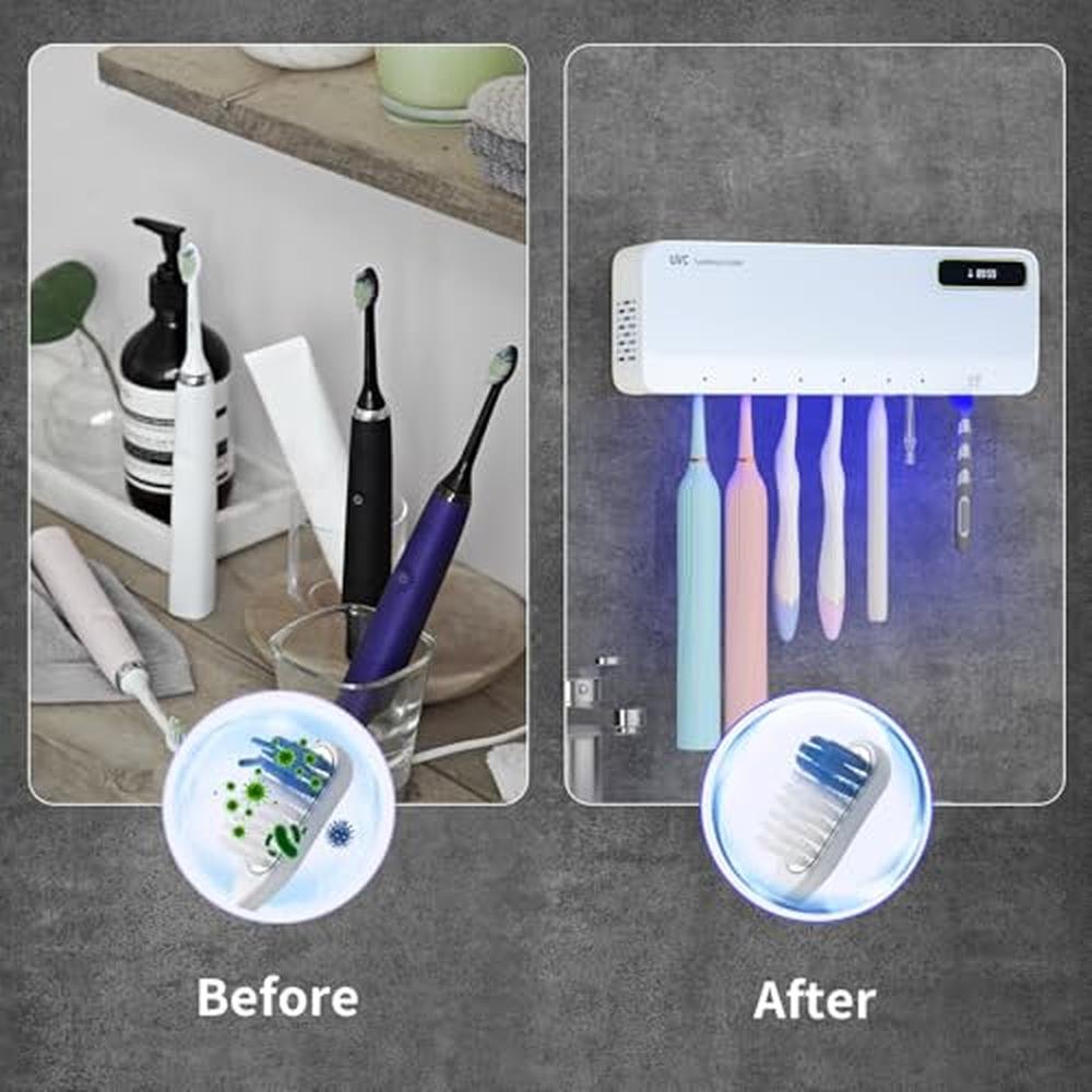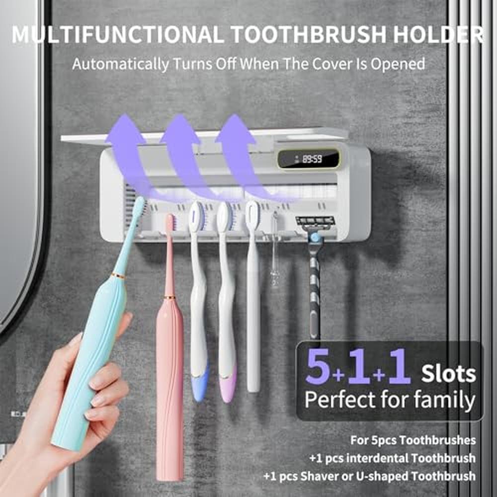 Toothbrush Holder | SwanKiss UV Sanitizer Holder with 5+1+1 Slots | Rechargeable Cordless Wall Mounted Design