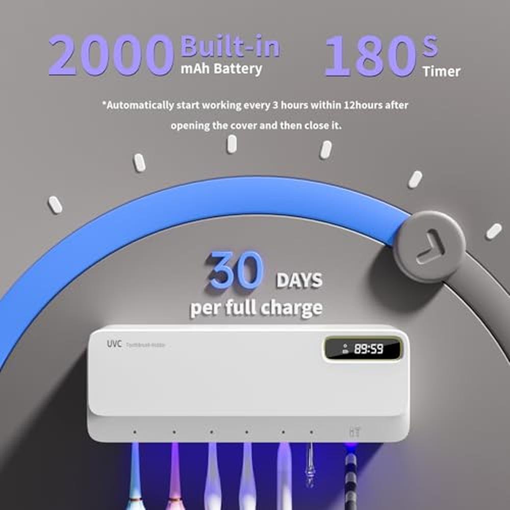 - The SwanKiss UV Toothbrush Sanitizer Holder features a rechargeable cordless design, making it easy to use and maintain, with a battery life of up to 30 days on a single charge