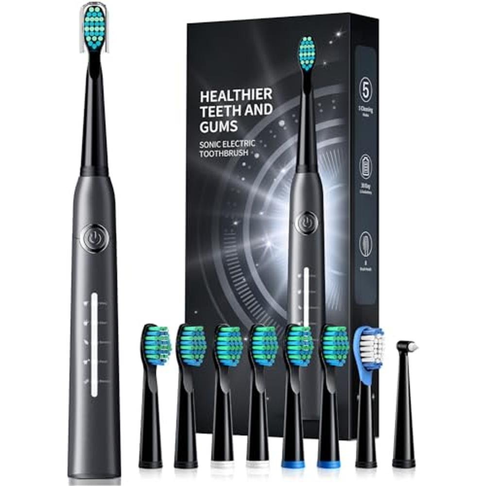 TEETHEORY Electric Toothbrush for Adults with 8 Brush Heads, Sonic Electric Toothbrush with 40000 VPM Deep Clean 5 Modes, Rechargeable Toothbrushes Fast Charge 4 Hours Last 30 Days