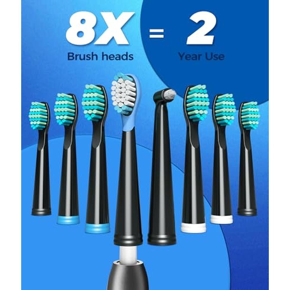 - Replacement Brush Heads Last for YEARS - Sonicare electric toothbrush comes with 8 DuPont brush heads, which you can use for 2 years. High-density bristles and design in "W" shape can go into the gum thoroughly, removes the stubborn tooth stains deeply.You can share a toothbrush, and different color collars can be used to distinguish the toothbrush heads of different family members. You will know it's time to change the brush head.