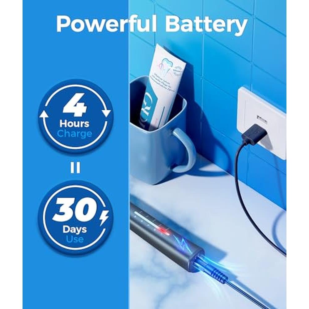 Healthier Gums- Equipped with a powerful and industry leading motor producing 40,000 vpm, this sonic electric toothbrushes for adults and kids can effectively remove up to 99.99% plaques. Get a thorough 10 X cleaning effect than manual toothbrush, 6X than ordinary electric toothbrush.