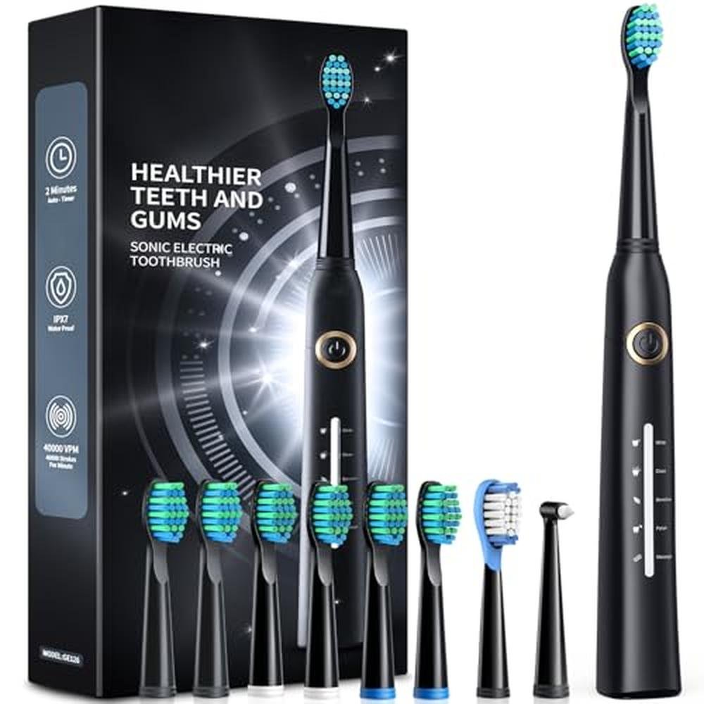 • Healthier Gums- Equipped with a powerful and industry leading motor producing 40,000 vpm, this sonic electric toothbrushes for adults and kids can effectively remove up to 99.99% plaques. Get a thorough X cleaning effect than manual toothbrush, 6X than ordinary electric toothbrush
