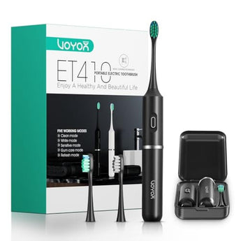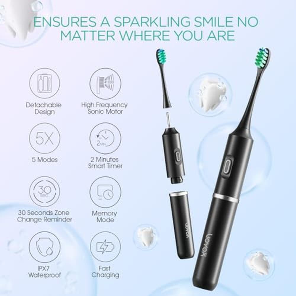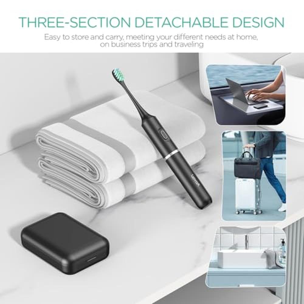 VOYOR-Health Travel Electric Toothbrush, Rechargeable Toothbrushes for Adults, Portable Sonic Toothbrush with 5 Modes, Three-Section Detachable Design with Travel Case ET410 (Black)