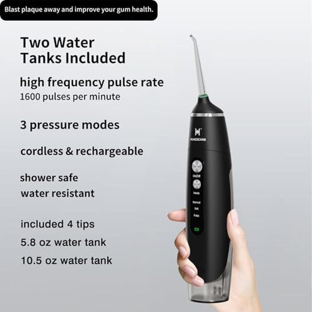 HUACO CARE Water Flosser,Water Flosser Equipped with Two Water Tanks for Home and Travel ,3 Modes Dental Oral Irrigator,Portable,IPX7 Waterproof,Powerful Battery Life, Water Dental Flossers for Teeth