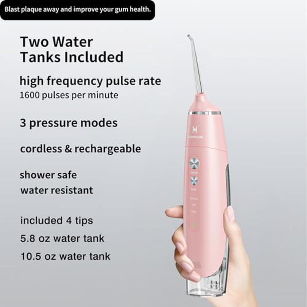 HUACO CARE Water Flosser,Water Flosser Equipped with Two Water Tanks for Home and Travel ,3 Modes Dental Oral Irrigator,Portable,IPX7 Waterproof,Powerful Battery Life, Water Dental Flossers for Teeth
