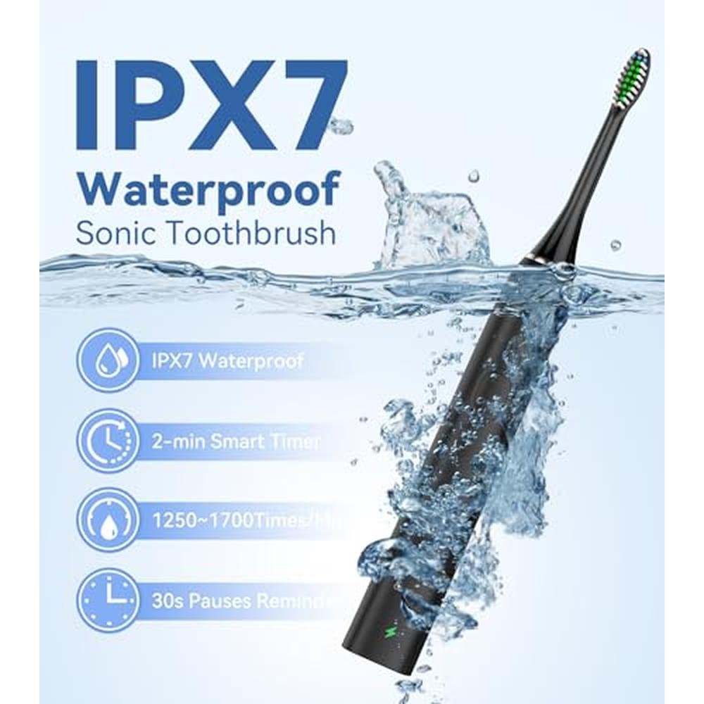 Water Flosser & Ultrasonic Electric Toothbrush Combo, 600ML Water Dental Flosser with 7 Jet Tips, 10 Adjustable Water Pressure, 5 Toothbrush Heads for Home Use, Gums, Braces (Black)