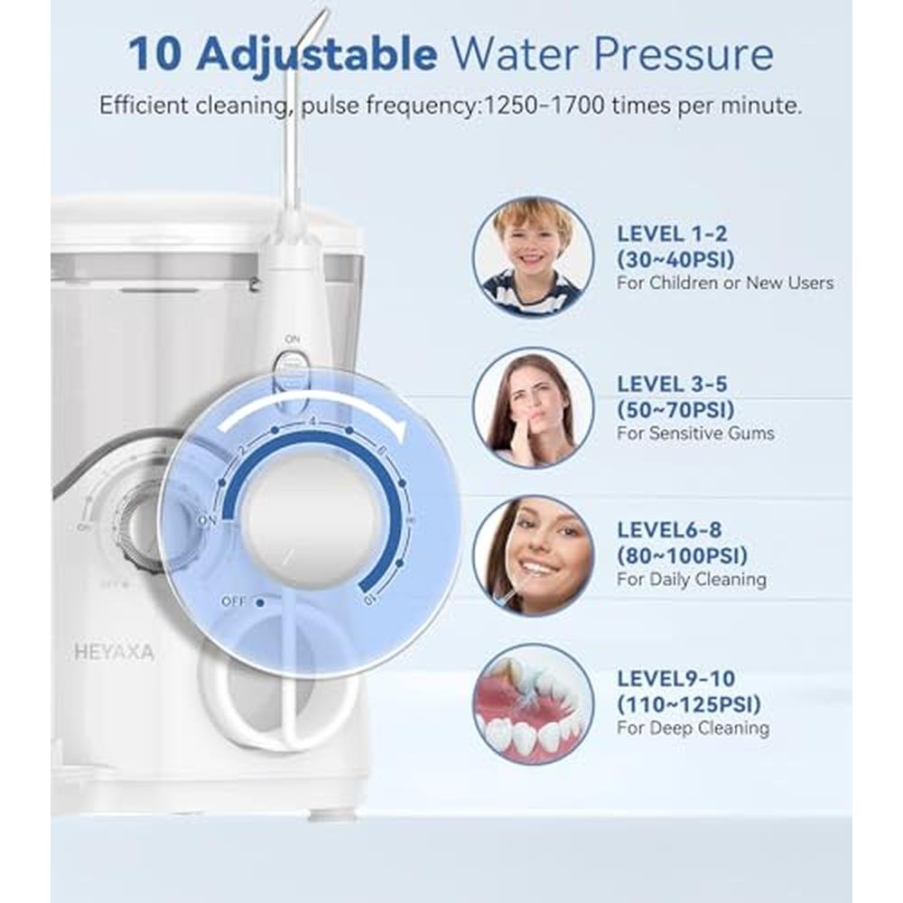 - Features a 600ML water dental flosser with 7 jet tips for thorough cleaning and 10 adjustable water pressure settings for customized oral care.