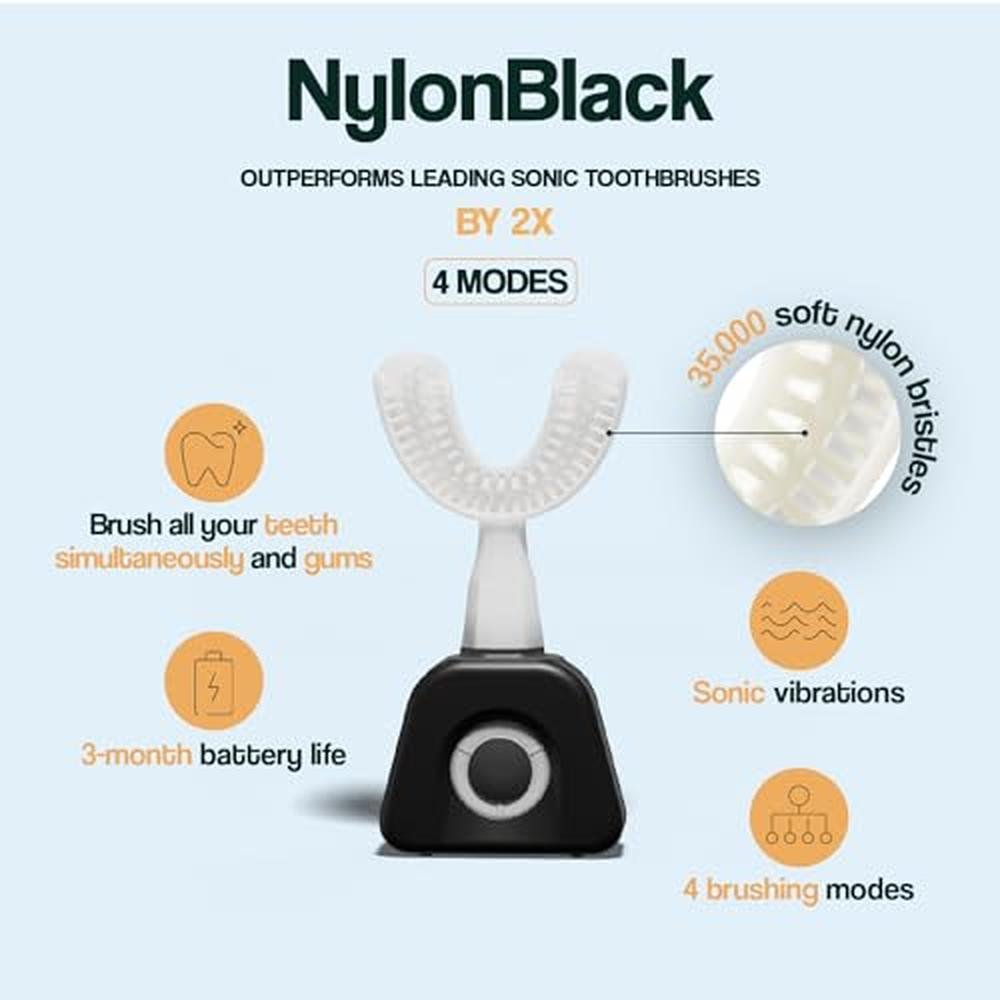 Y-Brush NylonBlack 2024 - Electric Toothbrush - Y-Shaped Brush - Innovation Awards at CES 2023-3 Months Battery Life - Adult - Clinically Proven