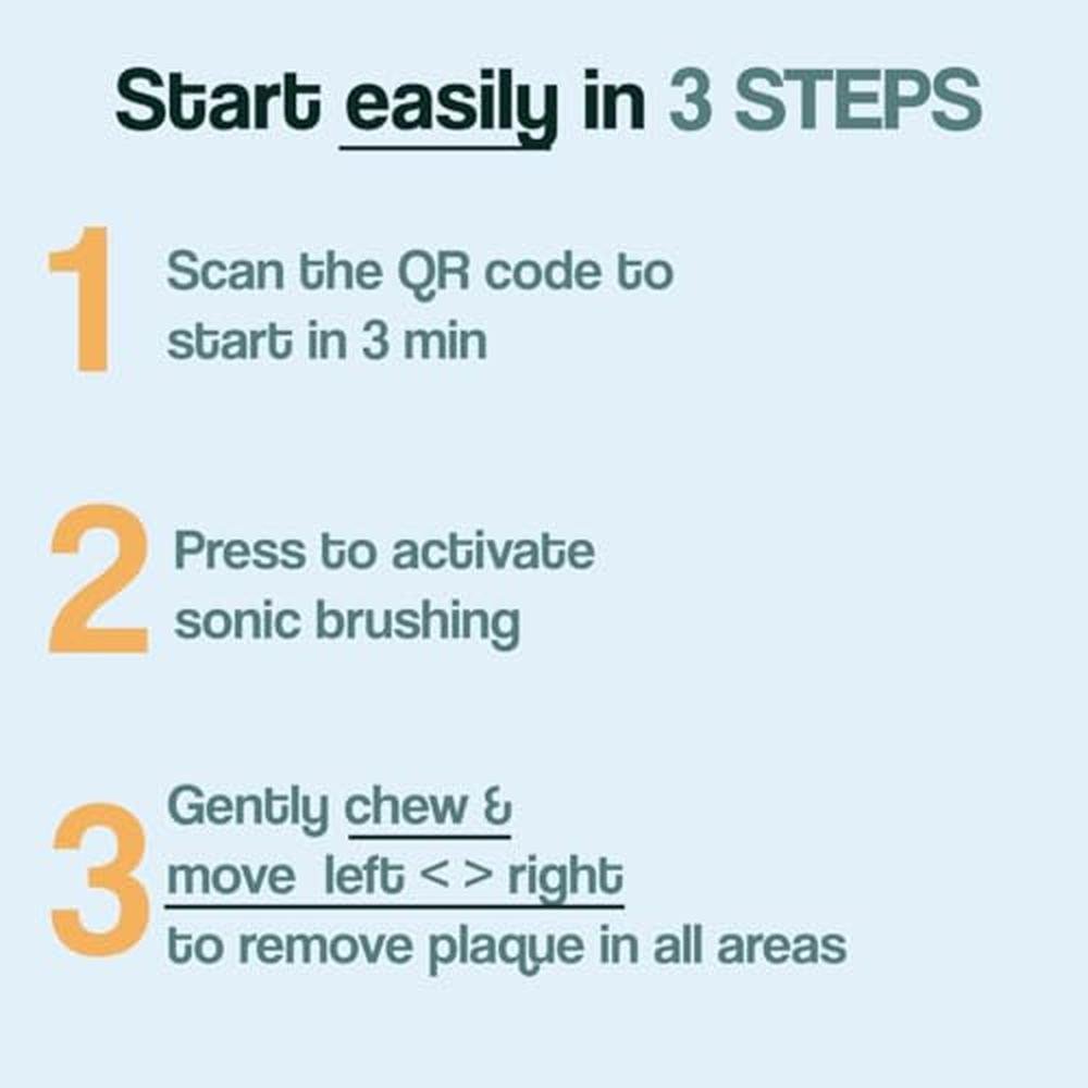 • QUICKSTART PROGRAM: Open the box, scan the QR code, and follow the short video tutorial to get started. Bite down lightly and move the brush from side to side. 10 seconds on top and 10 seconds on bottom for clean and healthy teeth and gums!