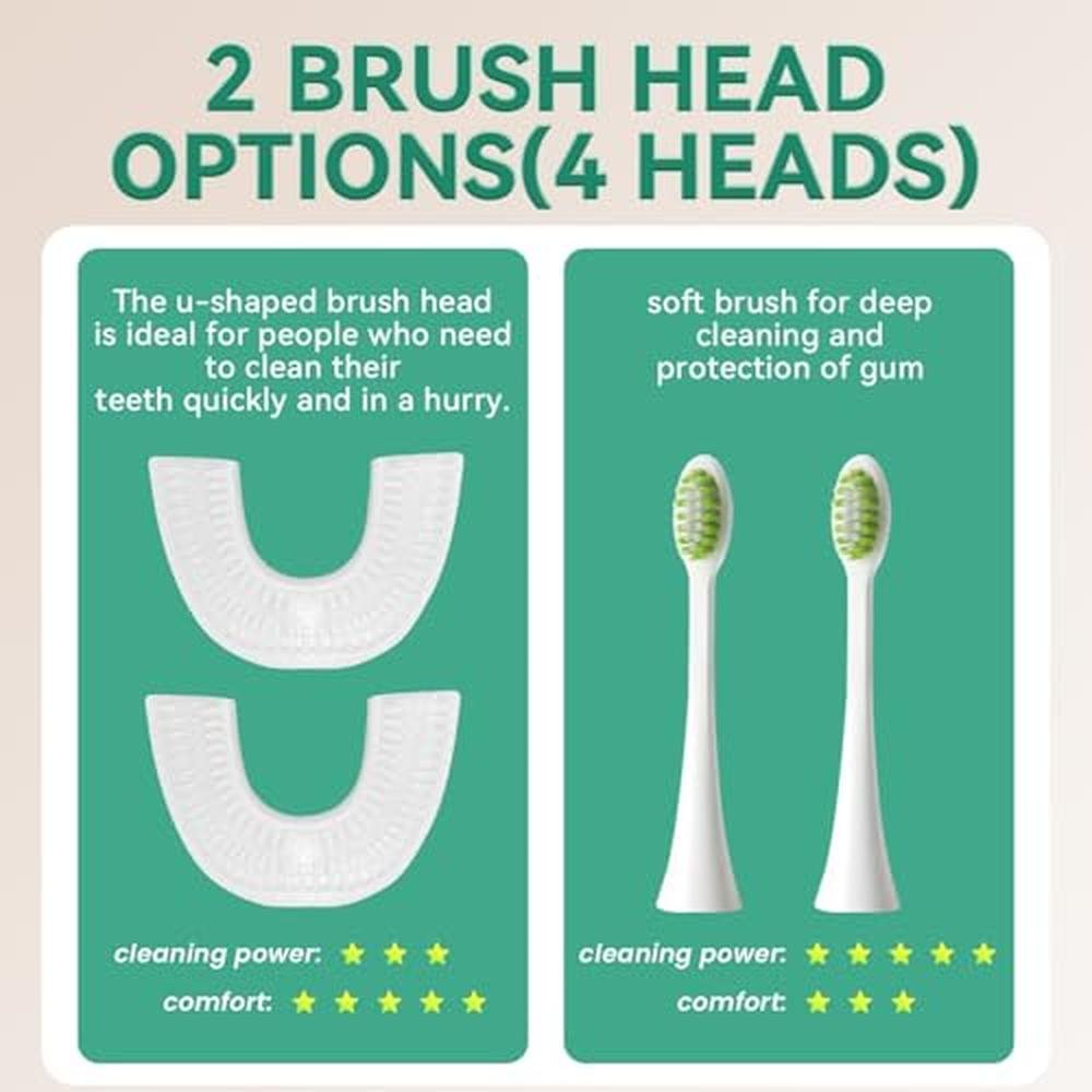 yeklike Adult Sonic Automatic Electric Toothbrush, 360 Oral Cleaning Stain Whitening, IPX7 Waterproof Rechargeable, u-Shape Brush Head*3+Straight Handle Brush Head*2, Suitable for Travel or Home Use