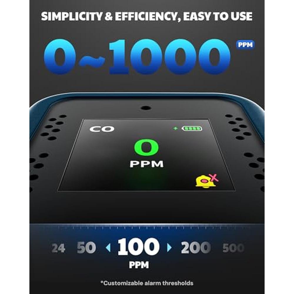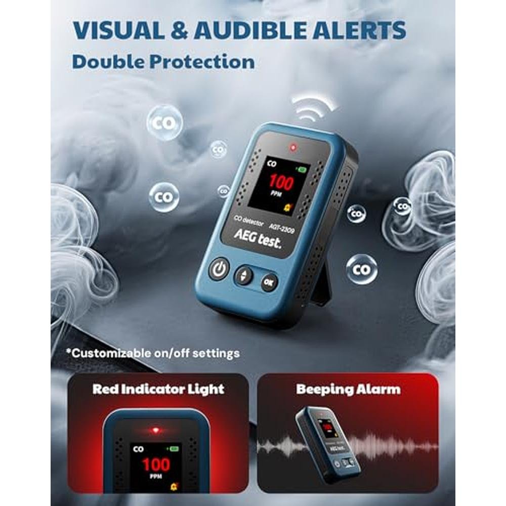 AEGTEST AGT-2309 Portable Carbon Monoxide Detector, 15-Day Standby, Rechargeable Mini CO Monitor with Lanyard for Travel & Camping, Handheld CO Meter with Audible & Visual Alerts, 0-1000ppm - Blue