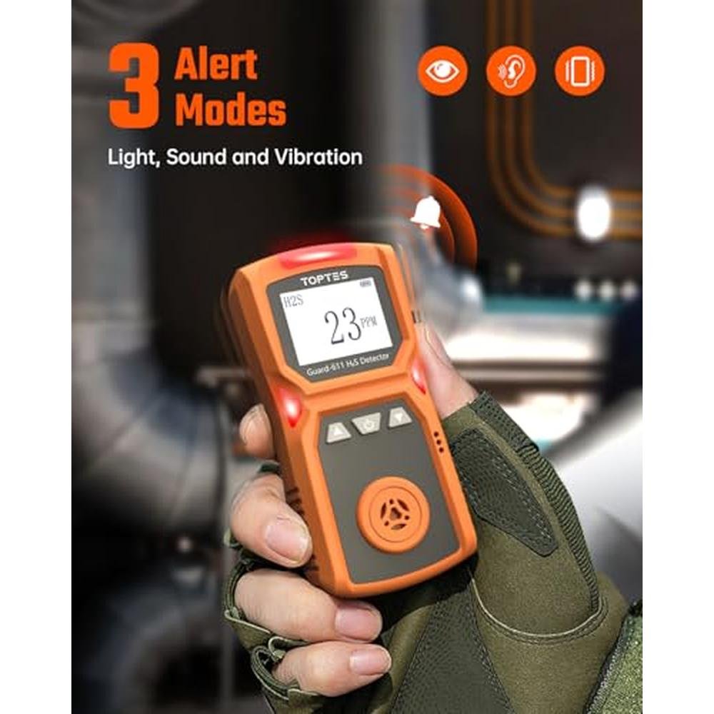 TOPTES Guard-611 TOPTES Guard-611 is the ultimate portable hydrogen sulfide gas detector designed for both home and work use. Equipped with a rechargeable battery, this H2S monitor provides up to 5 days of continuous operation on a single charge, making it perfect for daily monitoring needs and emergency situations. Long Battery Life: The rechargeable battery allows for up to 5 days of continuous use. The real-time battery level indicators and low battery alerts ensure the device is always ready for operation. Triple Alarm System: With visual, audible, and vibration alarms, the Guard-611 ensures timely alerts during hazardous situations. It also features an alarm data log that records events for easy reference and enhanced safety management. Portable and Durable: Designed for ease of use, the Guard-611 comes with a convenient clip for easy attachment, making it suitable for various work environments. Constructed with high-strength ABS plastic, it is waterproof, dustproof, and explosion-proof, ideal for use in humid or dusty settings. Certified Reliability: The Guard-611 has undergone rigorous testing by international certification bodies, ensuring its reliability and compliance with industry standards, and it comes with a calibration certificate. It is suitable for homes, industrial settings, agriculture, mining, sewage treatment, and emergency response scenarios. What You Get: Your purchase includes: 1x Guard-611 H2S Detector 1x Packaging Box 1x User Manual 1x Charging Cable 1x Standard Gas Hood TOPTES stands behind the Guard-611 with a commitment to quality and safety, providing a dependable gas monitor detector for your protection. Order yours today and ensure the safety of your home and workplace. We provide a 36-month after-sale service and lifetime technical support. If you have any questions or concerns, please feel free to contact us.