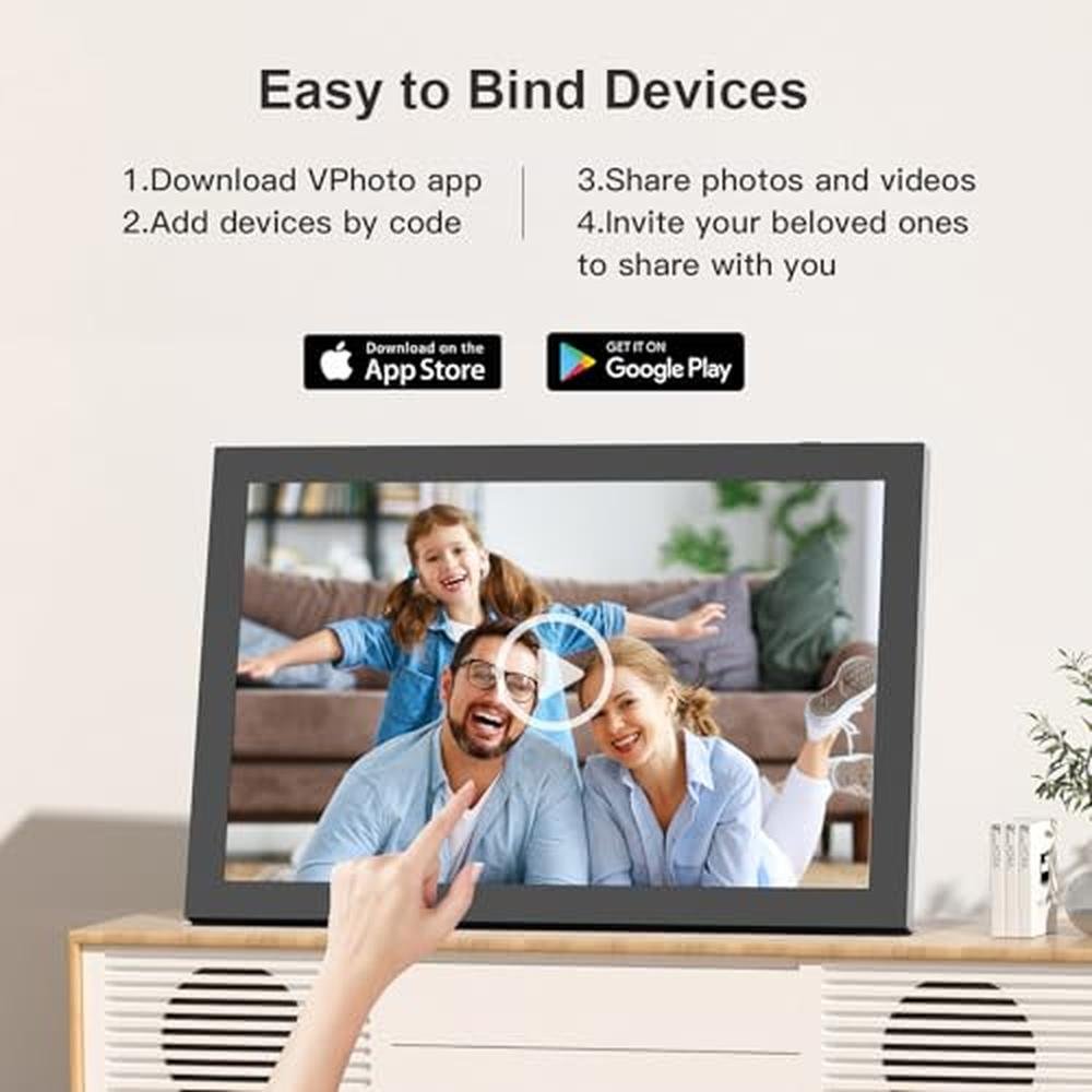 • [Effortless Wi-Fi Sharing] Seamlessly and instantly share your cherished moments with the 10.1-inch digital picture frame using the "VPhoto" app or email, enabling you to send images to the smart photo frame within seconds. With the ability to accommodate up to 30 members and multiple senders, this innovative Wi-Fi photo frame keeps everyone connected, allowing them to collectively relish cherished memories from anywhere.