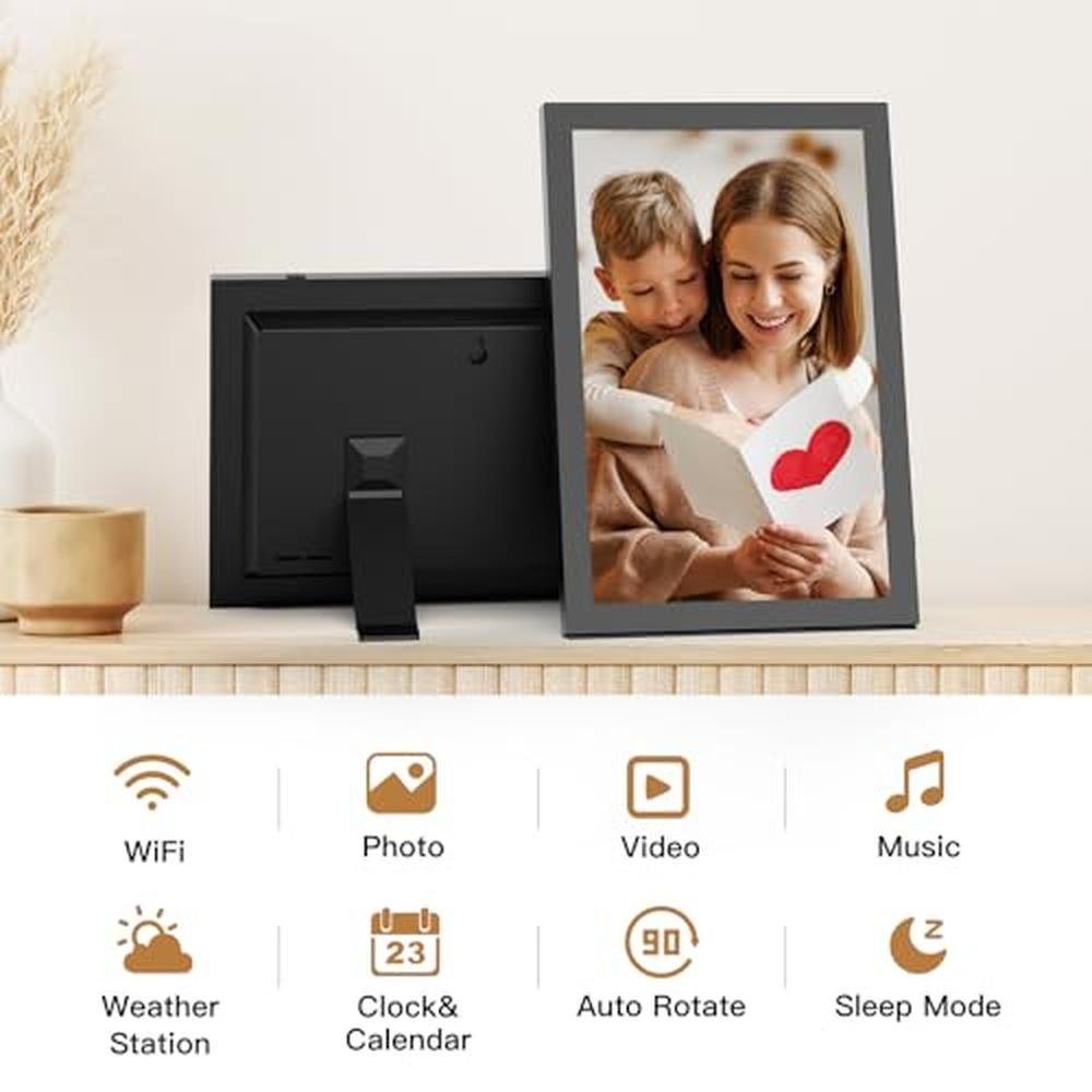 • [Captivating Display of Memories] The digital picture frame Wi-Fi features a touch screen and a wide viewing angle, along with a high-definition 1280x800 pixel display and 32GB of onboard memory for local storage. Additionally, this Wi-Fi photo frame is compatible with TF Cards and USB connections, offering expanded storage options for an exceptional user experience.