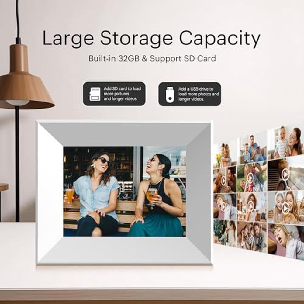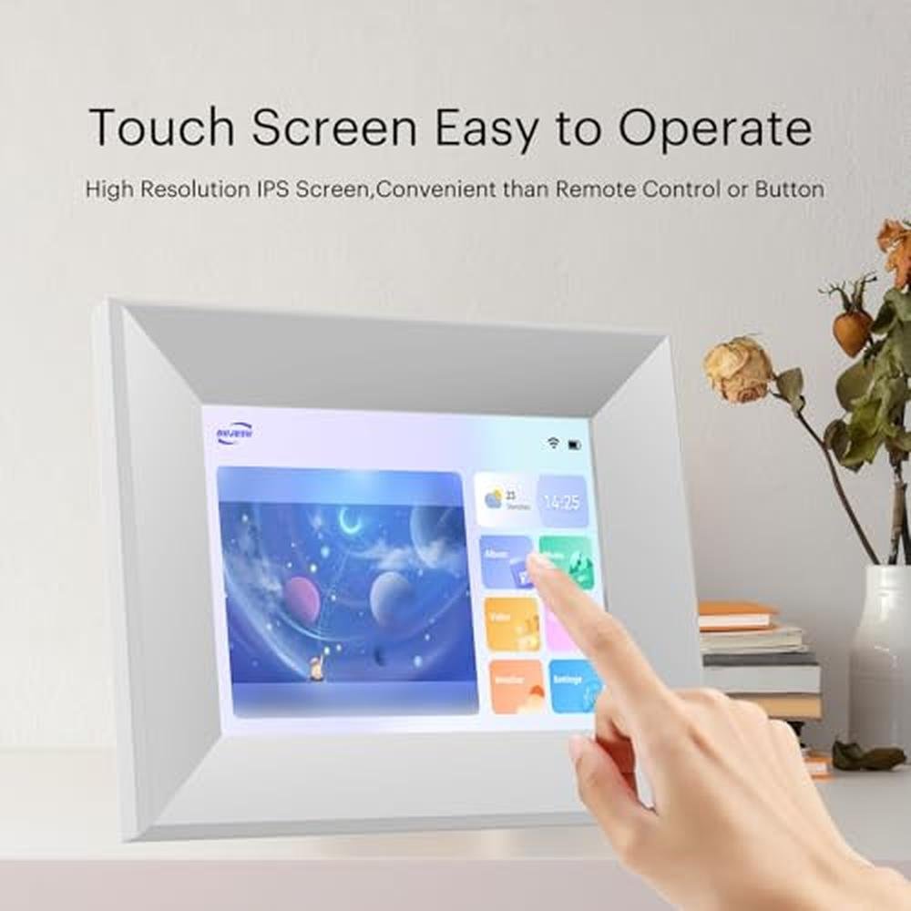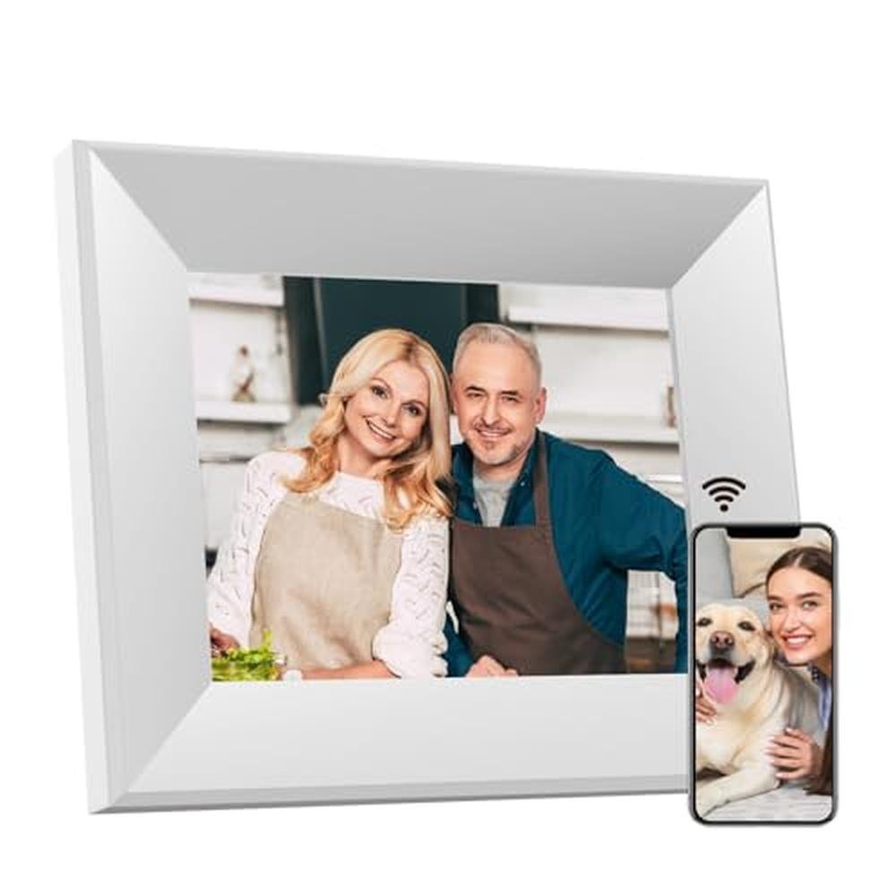 BWJBSW 8-Inch Digital Picture Frame with WiFi, Wood Finish Frame Smart Photo Frame HD IPS Touch Screen with 16GB Storage Easy Photo & Video Sharing from Anywhere Ideal Gift for Family, White