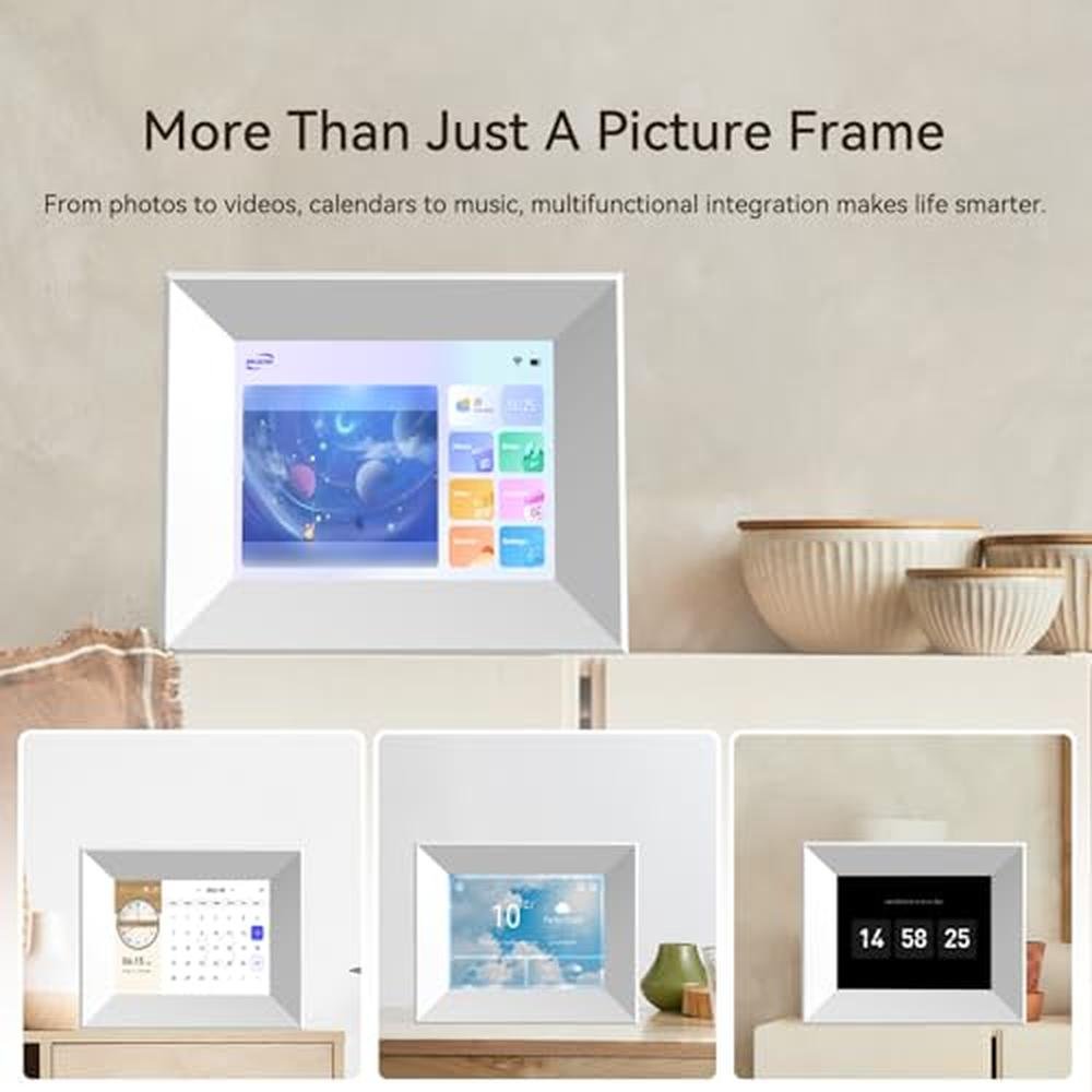 • AMPLE STORAGE & FEATURES: With 16GB internal storage, the frame can store over 10,000 photos. It supports photo slideshows with music, and has built-in features like a calendar, weather, video playback, and alarm. Additional storage is available through SD cards and USB sticks.